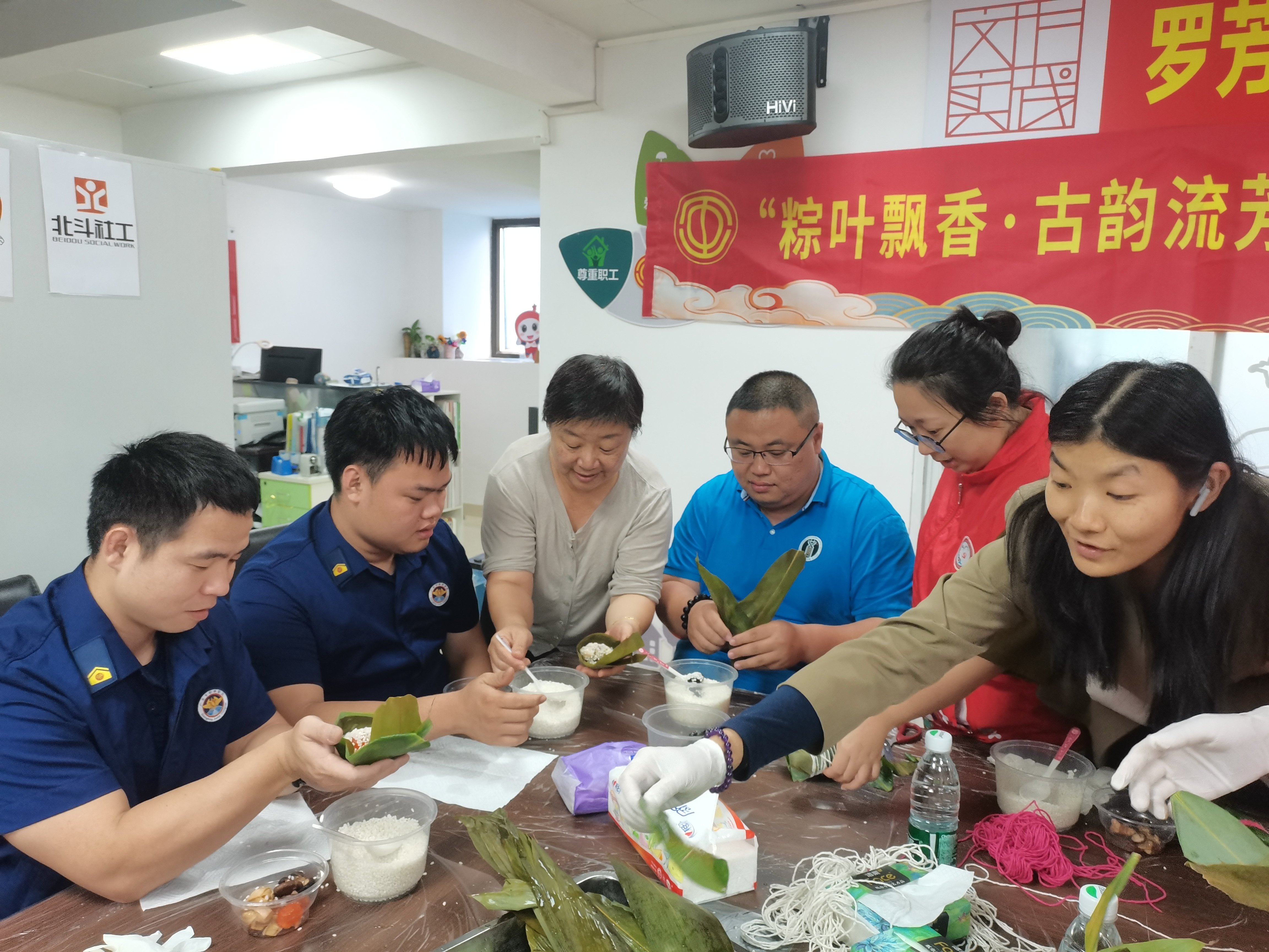 包粽子过程中,老师示范的标准动作让大家惊叹,而新手们则遇到了诸多困难,“米总是漏”“粽叶包不紧”等问题不断。但大家热情不减,有经验的职工主动帮助新手,从粽叶的拿法到馅料的搭配,一一指导。在大家的共同努力下,粽子逐渐成形