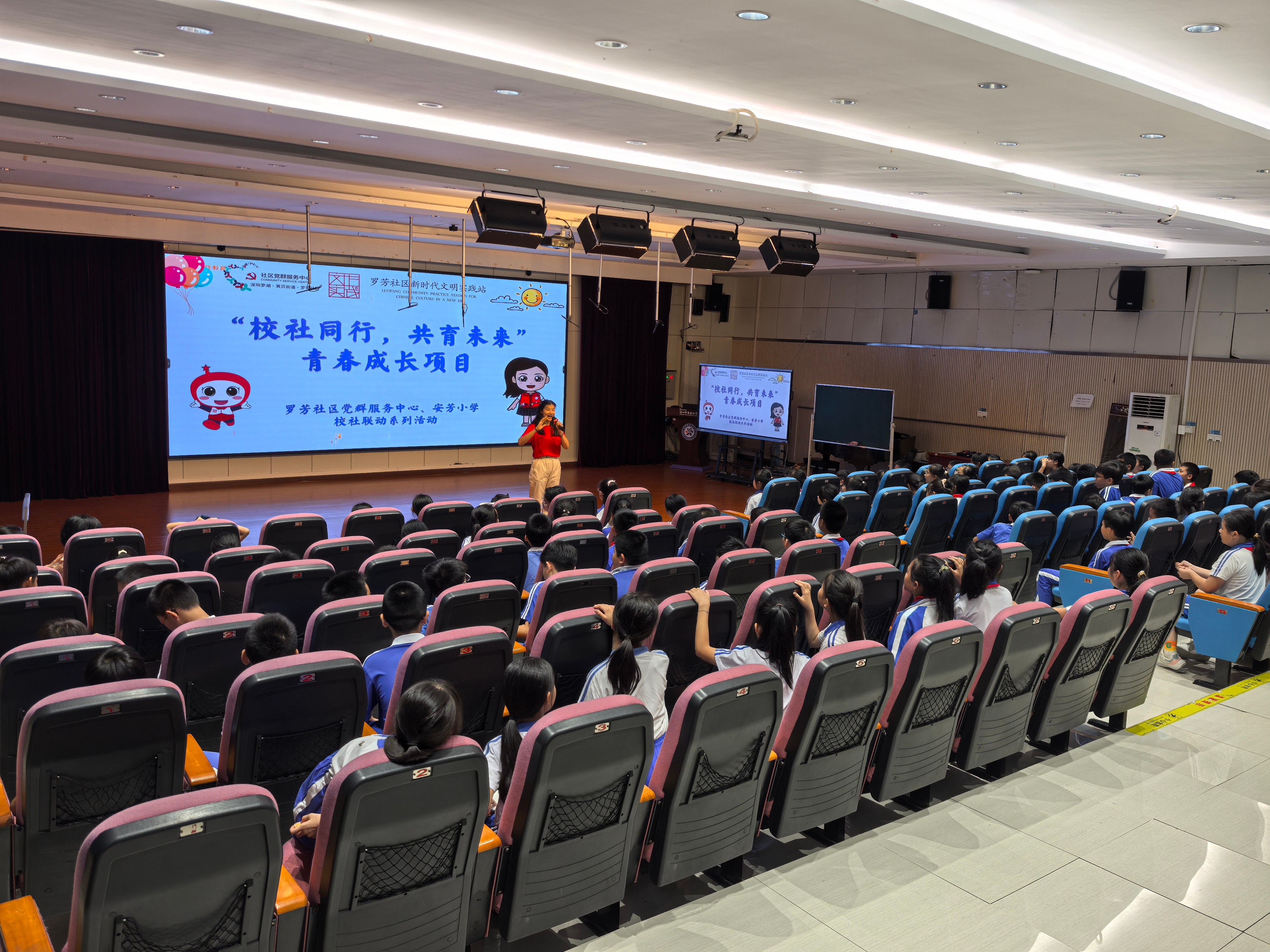 6 月 9 日 - 13 日,由罗芳社区党委、罗芳社区党群服务中心、深圳市北斗社会工作服务中心与安芳小学联合开展的“校社同行,共育未来”青春成长项目系列活动圆满落幕,活动涵盖心理健康宣传与毕业班减压活动,服务人次超 400人次,全方位呵护青少年心灵成长。