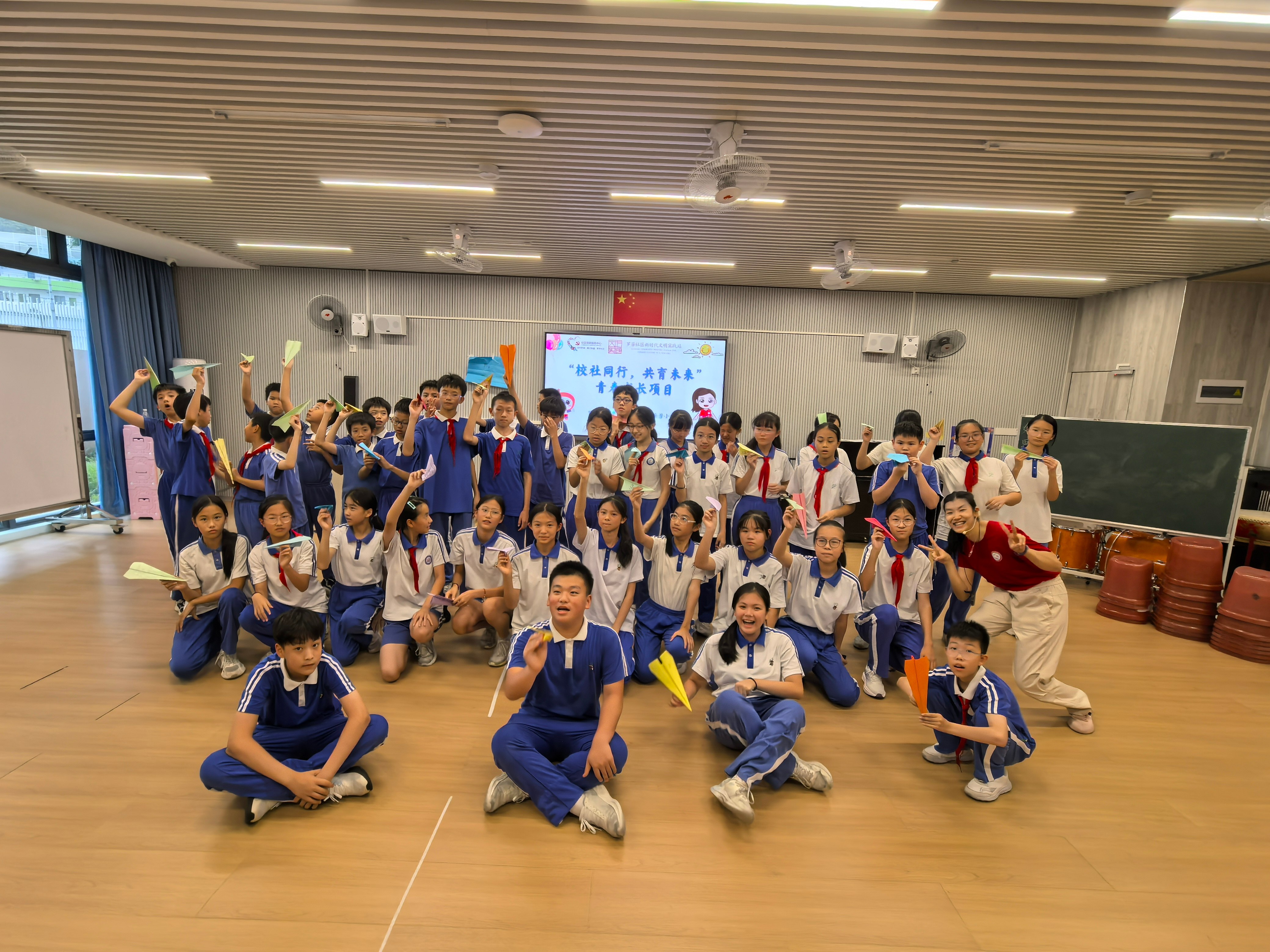 毕业班减压活动现场同样精彩纷呈,专业社工精心策划 “我最大”“社工大挑战”“放飞压力”等互动游戏,迅速点燃 150 余名毕业班学生的热情。在“放飞压力” 环节,同学们将升学压力与烦恼写在纸上,折成纸飞机放飞,在欢声笑语中释放焦虑。大家还敞开心扉分享压力感受,互相鼓励。“第一次玩这样的游戏,特别放松!”一位同学兴奋地分享道。