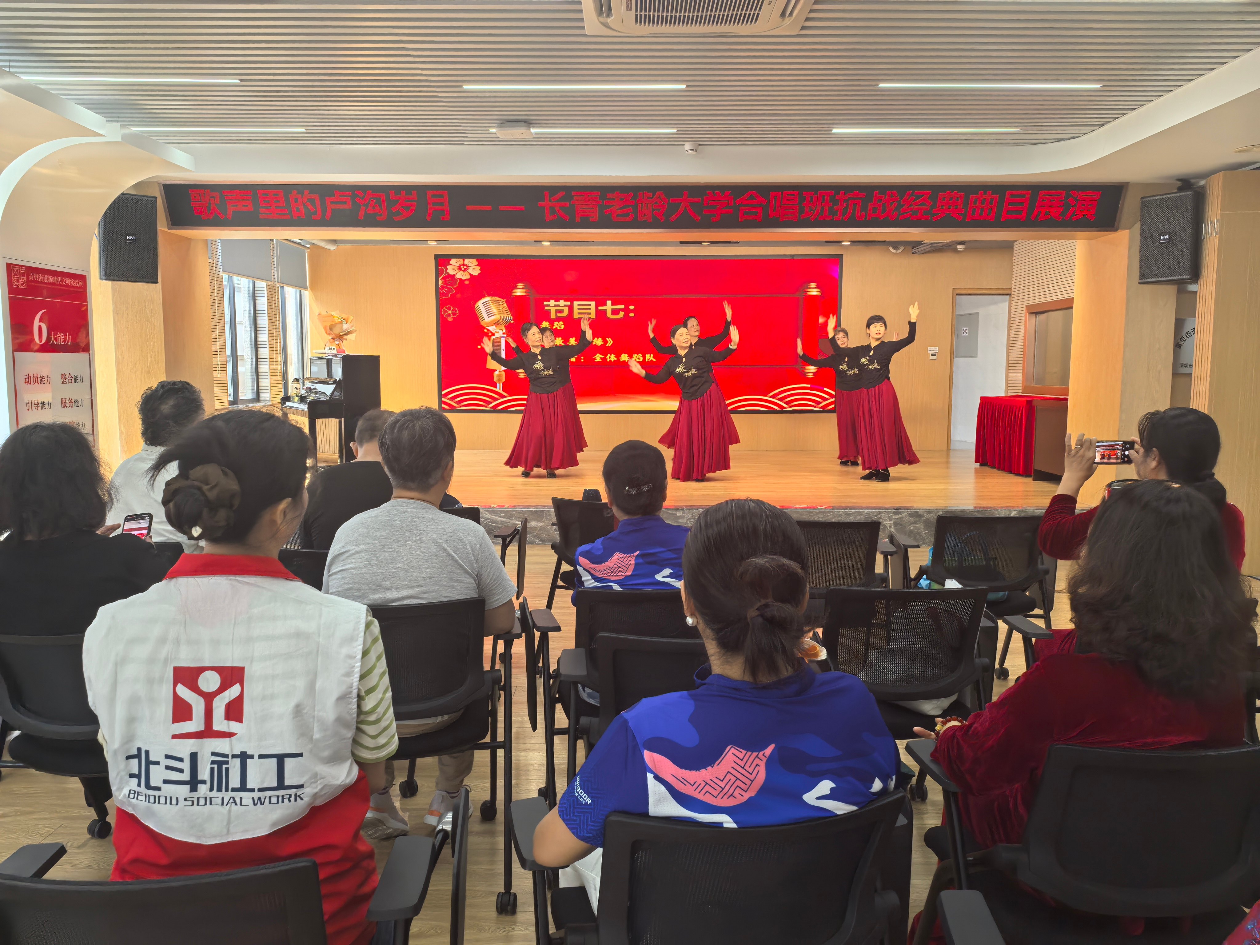 传承抗战精神 罗芳社区党群服务中心联合罗芳社区长青老龄大学在7月7日成功举办了“歌声里的卢沟岁月 - 长青老龄大学合唱班抗战经典曲目展演”活动。活动由罗芳社区老年人协会陆淑华主持,老同志们精神矍铄,热情高涨,以饱满的状态投入到表演中,用歌声诉说着那段难忘的卢沟岁月,传递着浓浓的爱国情怀。