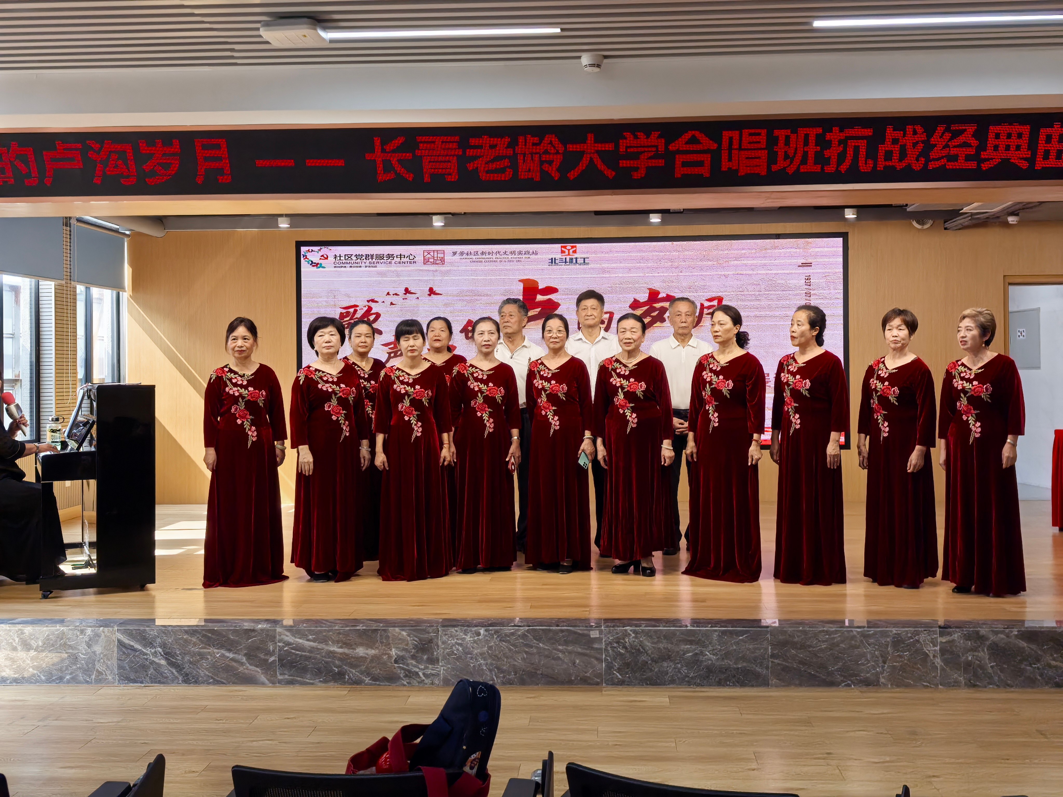 在罗芳社区党委的领导下,罗芳社区党群服务中心联合罗芳社区长青老龄大学于7月7日成功举办了“歌声里的卢沟岁月 - 长青老龄大学合唱班抗战经典曲目展演”活动。活动由罗芳社区老年人协会陆淑华主持,老同志们精神矍铄,热情高涨,以饱满的状态投入到表演中,用歌声诉说着那段难忘的卢沟岁月,传递着浓浓的爱国情怀.