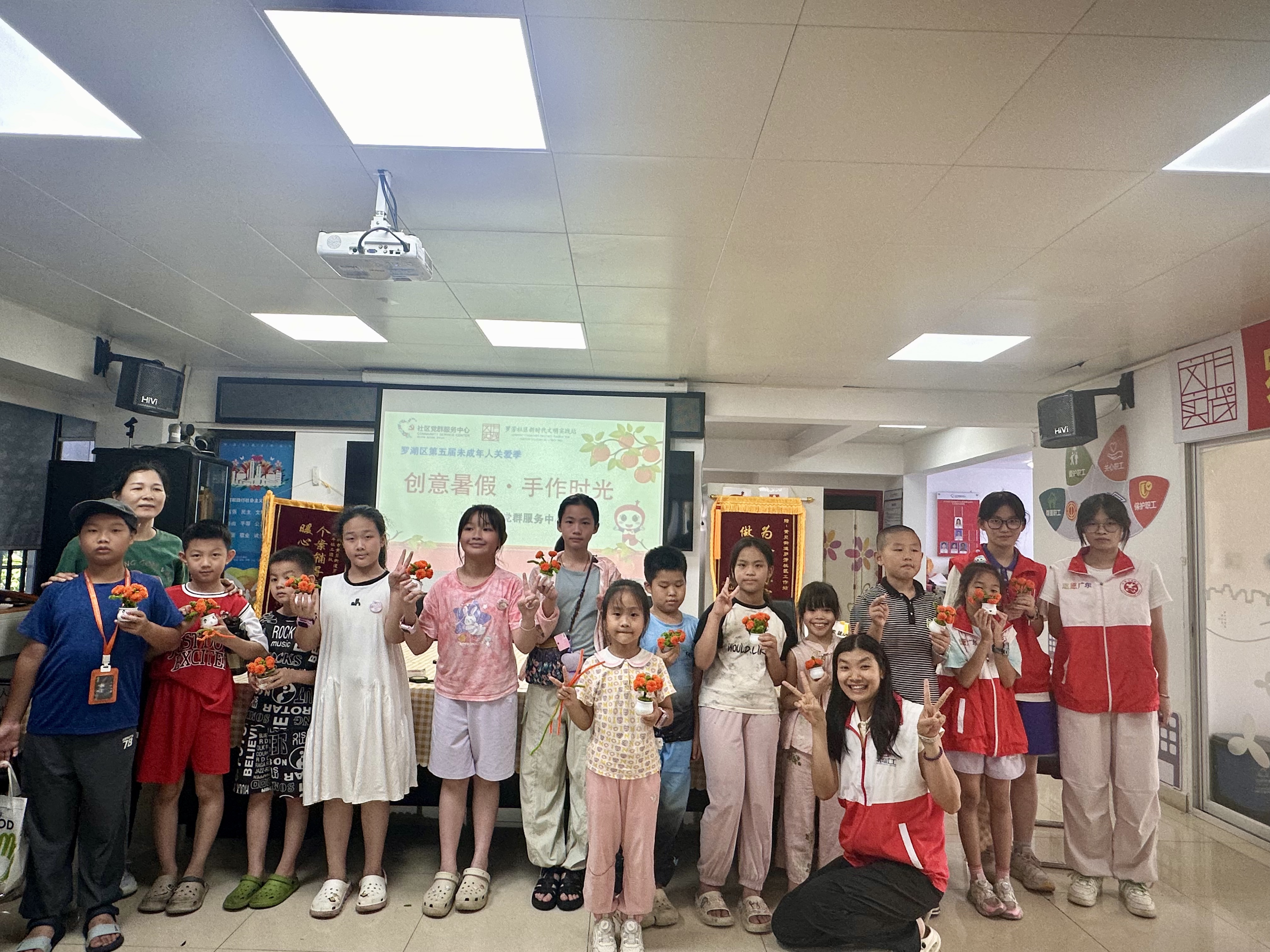 7月16日,罗芳社区“创意暑假・手作时光”工作坊如期举行,“柿柿如意”小盆栽制作主题吸引社区儿童青少年踊跃参与。社工先向孩子们介绍“柿柿如意”的谐音文化,传递“事事如意”的美好祝愿。制作过程中,孩子们创意迸发:有的按“流水线”高效完成基础步骤,有的反复揉捏调整柿子细节,有的化身“小帮手”手把手教同伴缠绕藤蔓。学生志愿者的加入更添温暖,现场互动频繁、笑语不断。最终,孩子们捧着亲手制作的盆栽,在收获成就感的同时,深刻体会到协作与坚持的意义,为社区暑期活动再添温馨一笔