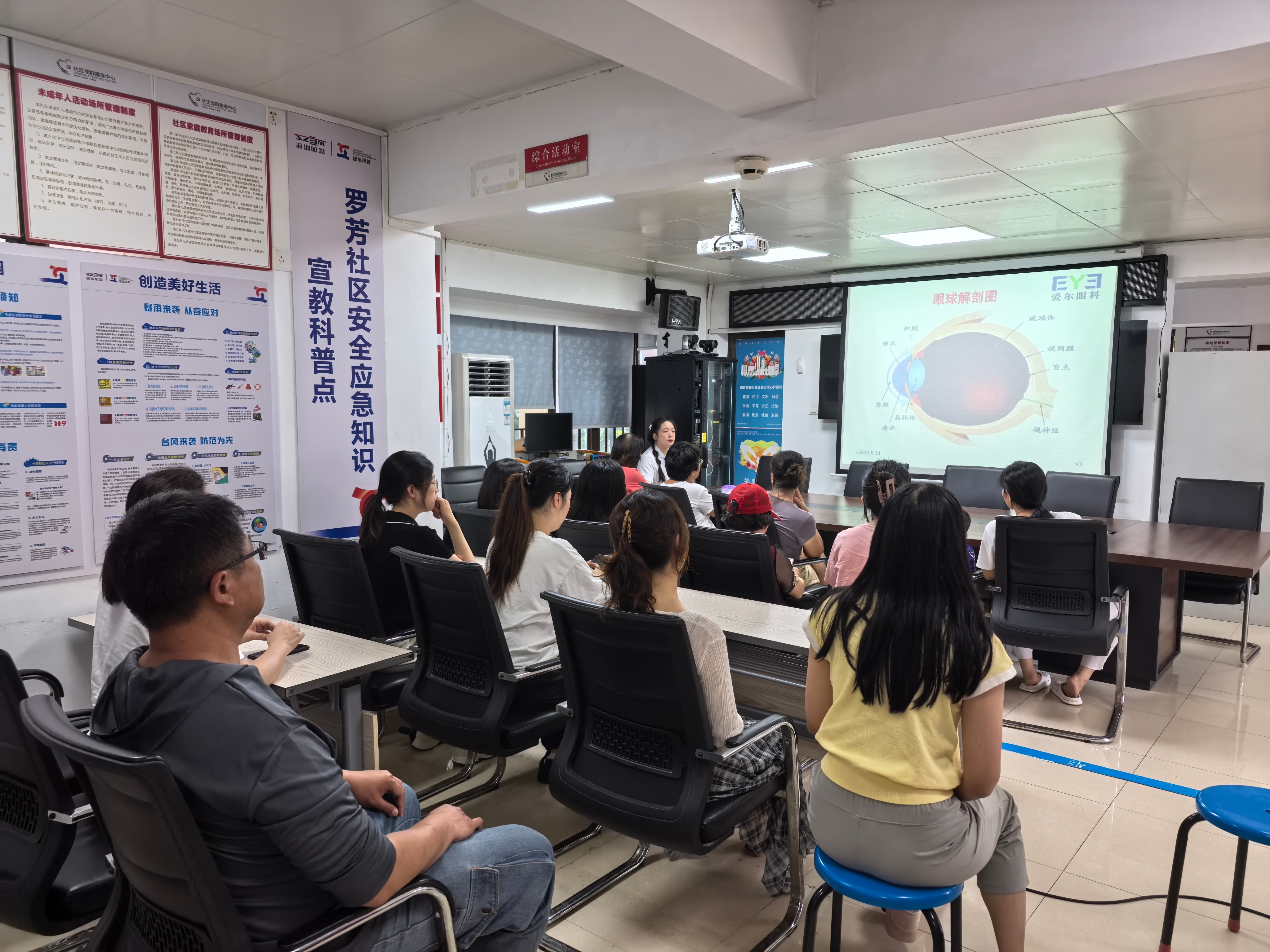 为提高社区老年人的眼健康意识,帮助他们了解常见眼科疾病的预防与治疗知识,8月11日,罗芳社区党群服务中心,罗芳社区新文明实践站,深圳市北斗社会工作服务中心联合爱尔眼科医院开展了一场主题为 守护“视”界,关爱“睛”彩晚年眼科健康筛查活动的健康讲座,并为现场居民提供了免费的眼部检查服务,受到了社区居民的热烈欢迎。