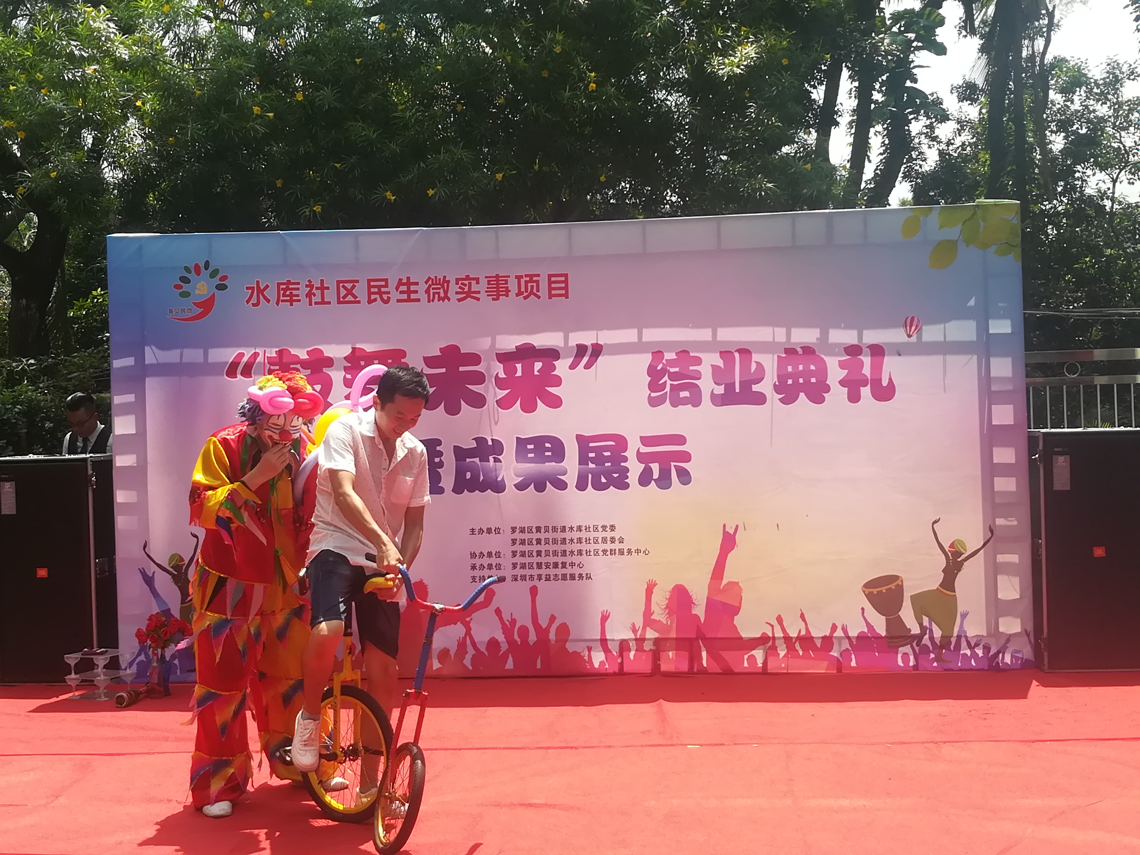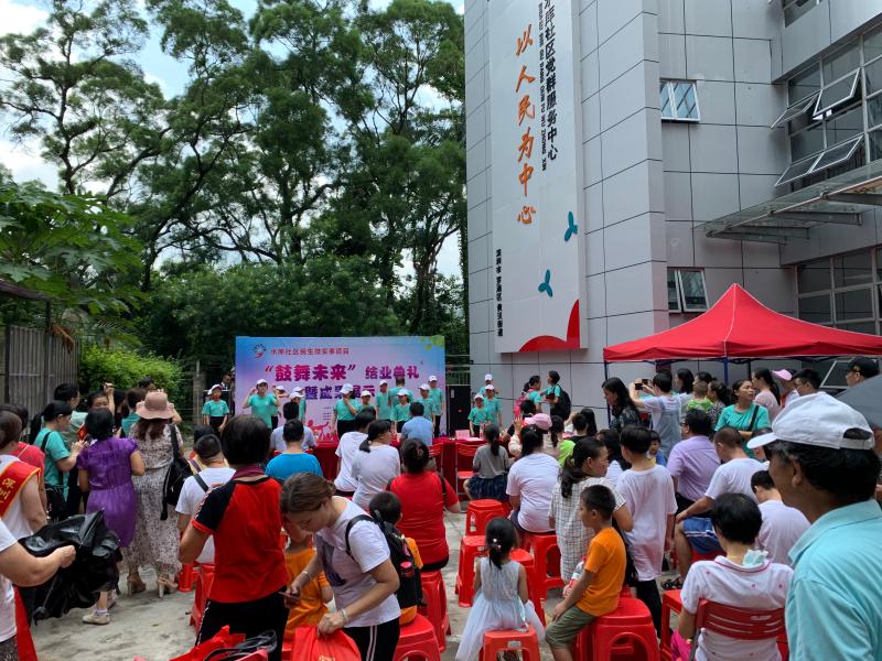 水库社区开展“鼓舞未来”汇报演出活动,实施前期项目,在水库社区党委和残联专干的支持帮助下,通过走访、电话进行调研发现水库社区残障人士因自身条件限制,缺少走出家门参与社区活动的机会,他们迫切希望得到一个朋辈群体支持,满足自己康娱需要的项目。为此,水库社区党委联合深圳市罗湖区慧安康复中心结合社区残障人士需要和能力特点,为社区残障人士设计开展“鼓舞未来”项目。