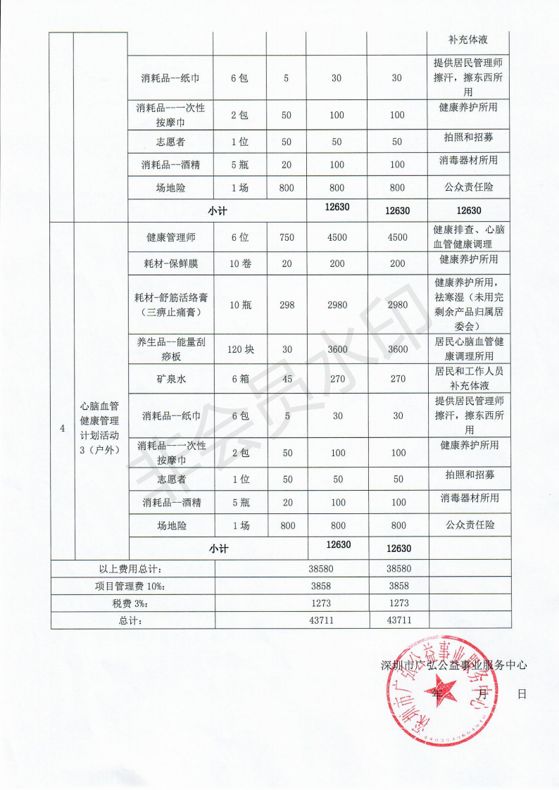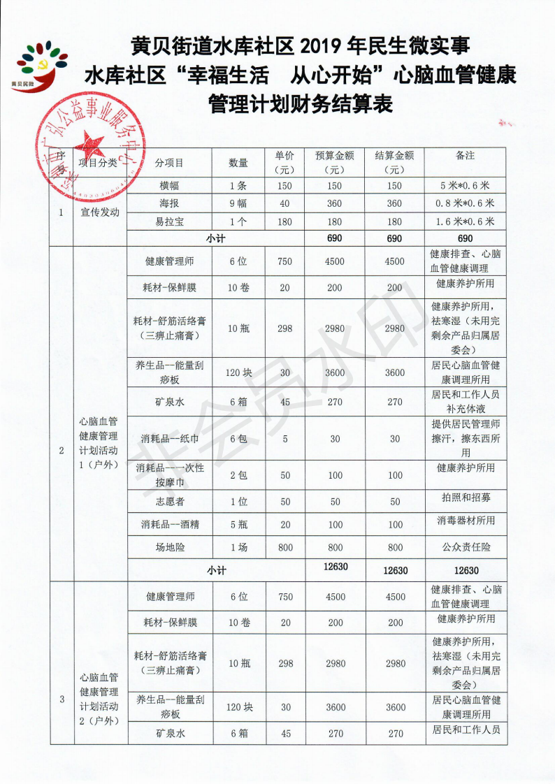 黄贝街道水库社区2019年民生微实事《水库社区“幸福生活从心开始”心脑血管健康管理计划》财务决算表情况公示