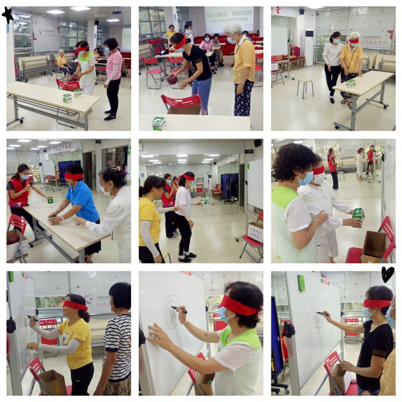 “不要害怕,再往前一点,你一定可以的,张开双手就能抓住它了。”随着组员的鼓励声,开始了本节小组的探索之旅——盲人过河。一名组员在蒙眼的情况下,根据另一名组员的指引,通过重重关卡,最终将过期药品送回了过期药品回收箱,并在黑板上画出了给予自己成功的大笑脸。通过前三节小组课,小组进入了成熟阶段,小组凝聚力强,组员关系更为亲密,互相信任,积极热情,有归属感,共同成长,有责任的共同完成任务。
