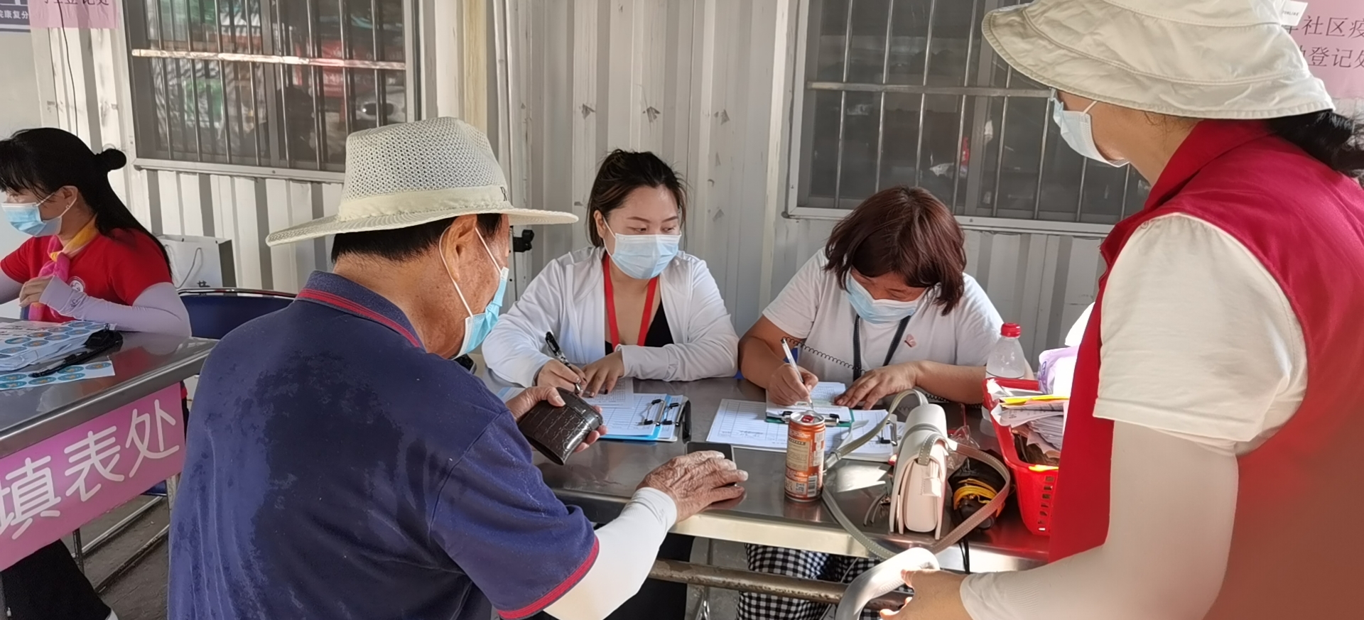 2021年9月10日水库社区为居民提供“一对一”全程陪同、免费专车接送、免费提供体检、提供家庭医生等服务;协助填写相关表格,指引道路,维护现场秩序,检查粤康码、提醒居民戴好口罩。