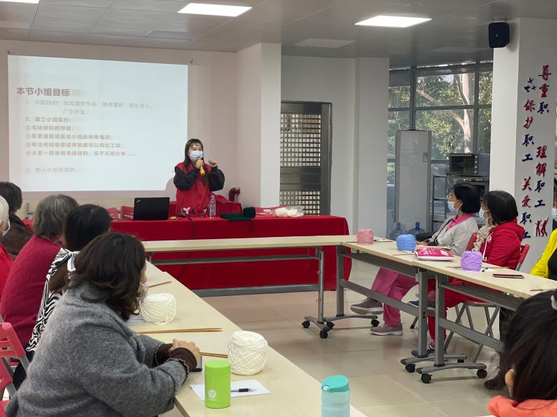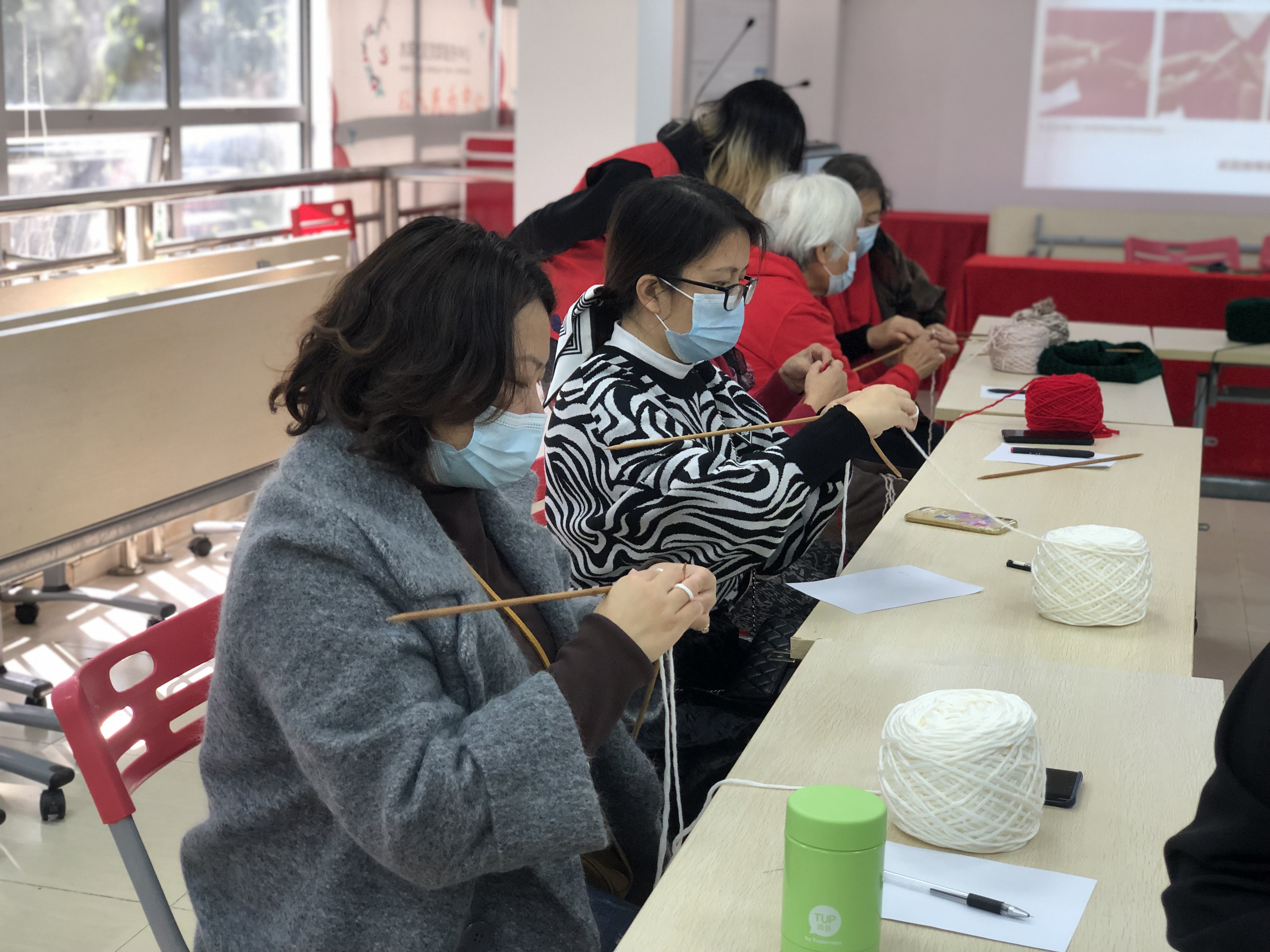 毛线编织是一种传统的手工艺,编织围巾具有轻软、经久耐用、携带方便等特点,还能作为时尚的穿搭饰品,组员们也可以通过本次小组,在手工编织的过程中全神贯注,放下家庭和生活的压力和烦恼,享受宁静时光舒缓压力、愉悦身心。