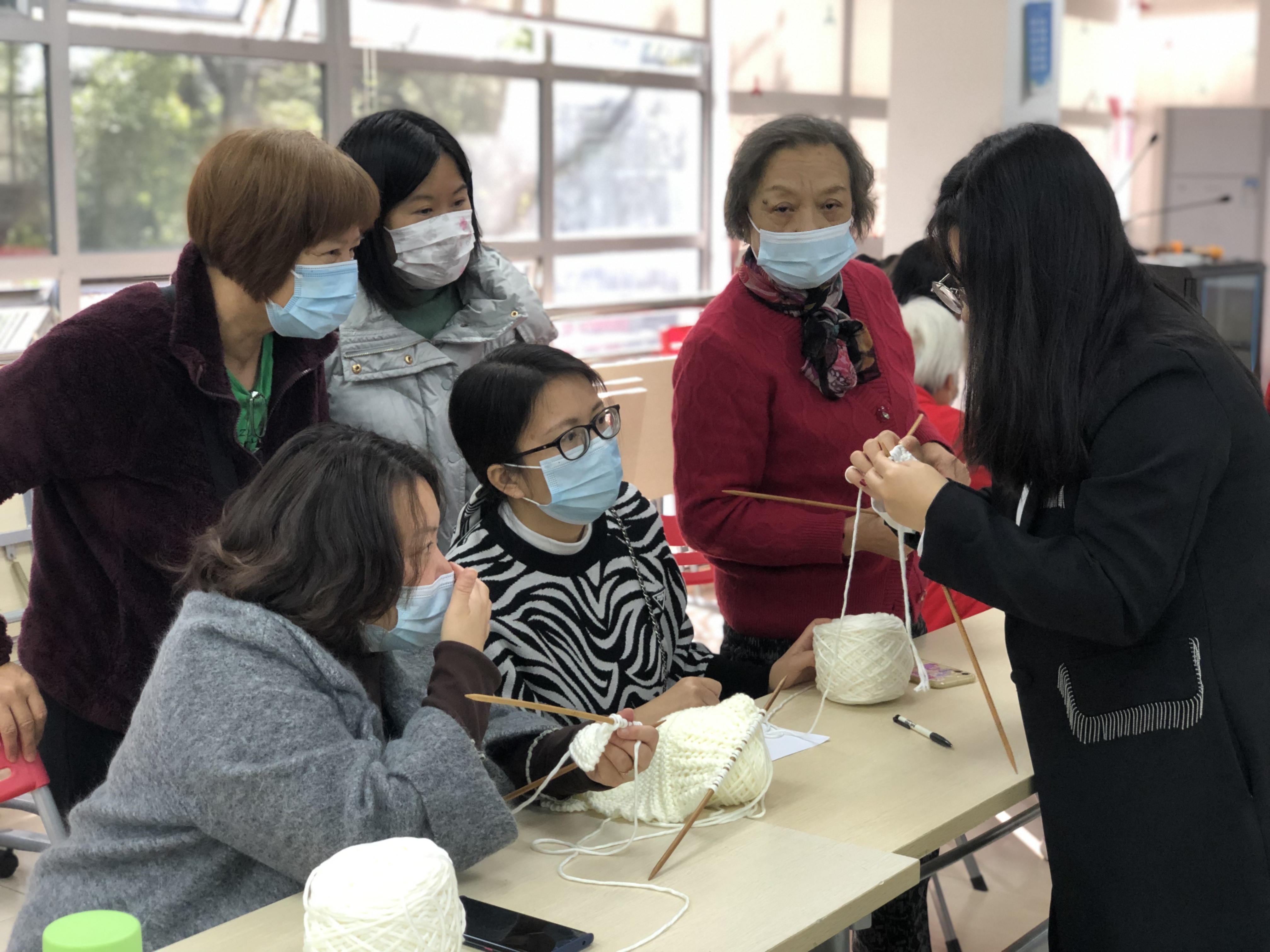 在轻松愉快的小组气氛下,社工紧接着向大家介绍毛线编织的基础针法和不同围巾的编织花样:有叫做珊瑚花、节节高的,也有叫幸福手牵手、同心结、蝶恋花......组员们听完社工的介绍,现场活跃起来,都对自己能织出什么样的围巾充满期待。