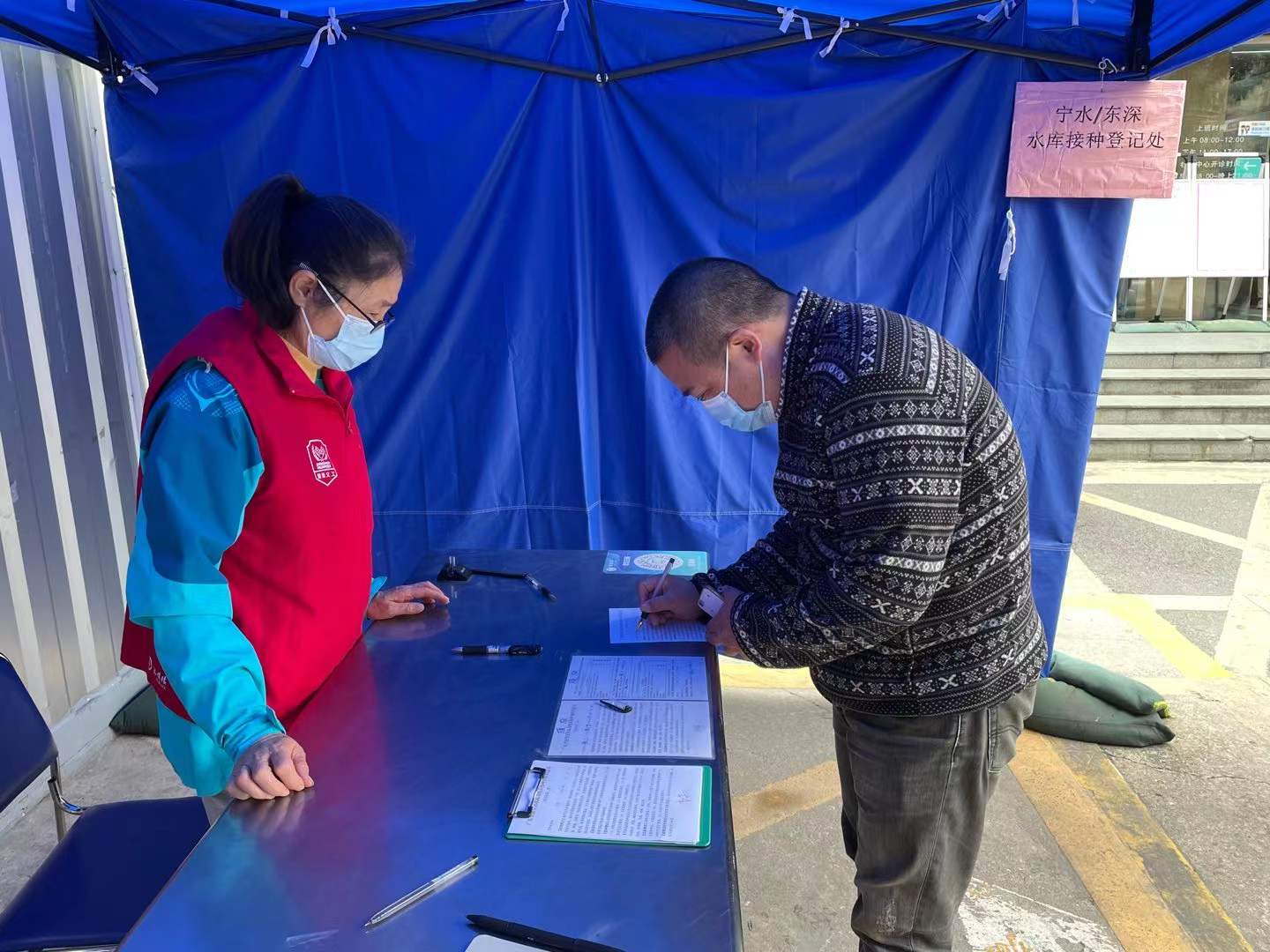 水库社区为居民提供“一对一”全程陪同、免费专车接送、免费提供体检、提供家庭医生等服务;协助填写相关表格,指引道路,维护现场秩序,检查粤康码、提醒居民戴好口罩。