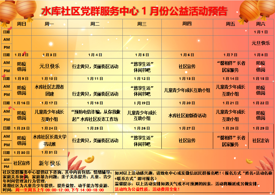 水库社区党群服务中心2022年1月份公益活动预告