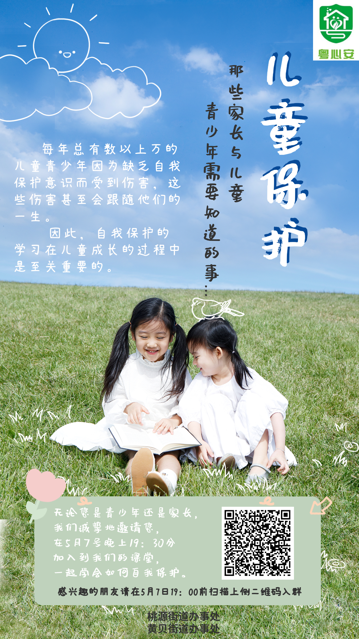 无论您是家长还是孩子,我们都诚挚地邀请您,扫描下方图片二维码进群,在5月7日晚上19:30加入到公益课堂《儿童保护》中,一起为孩子的健康成长助力。