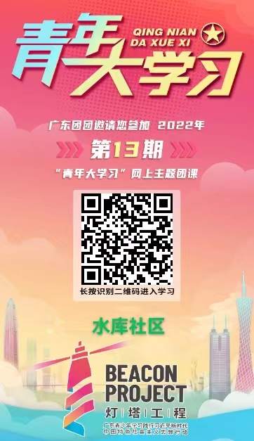 嘀嘀嘀,扫码青年大学习,第13期,地区选择广东深圳。学习时长不限。