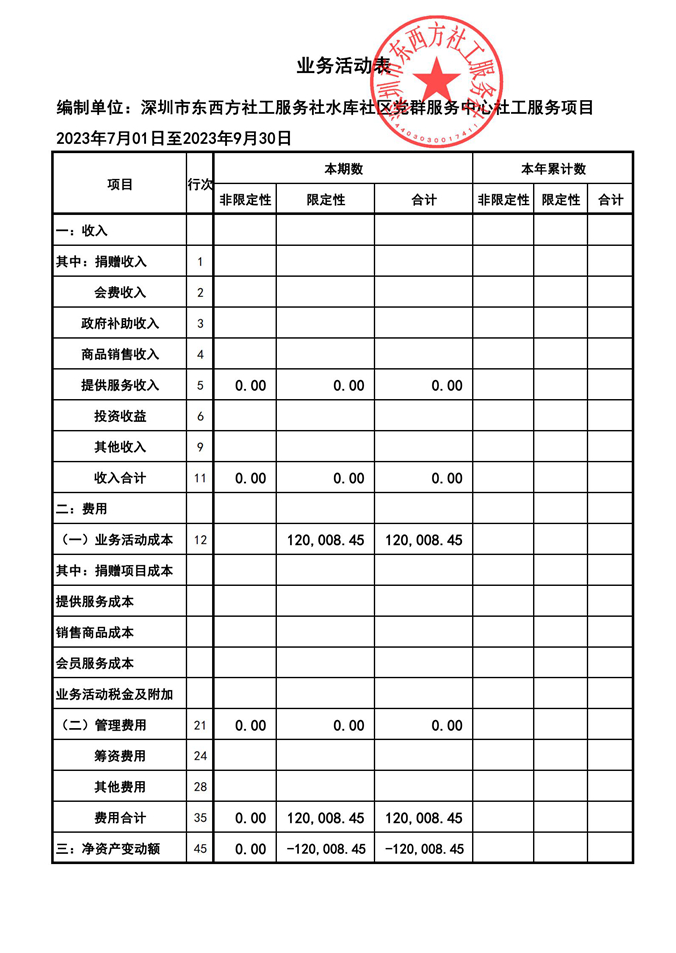 罗湖区黄贝街道水库社区党群服务中心业务活动支出公示