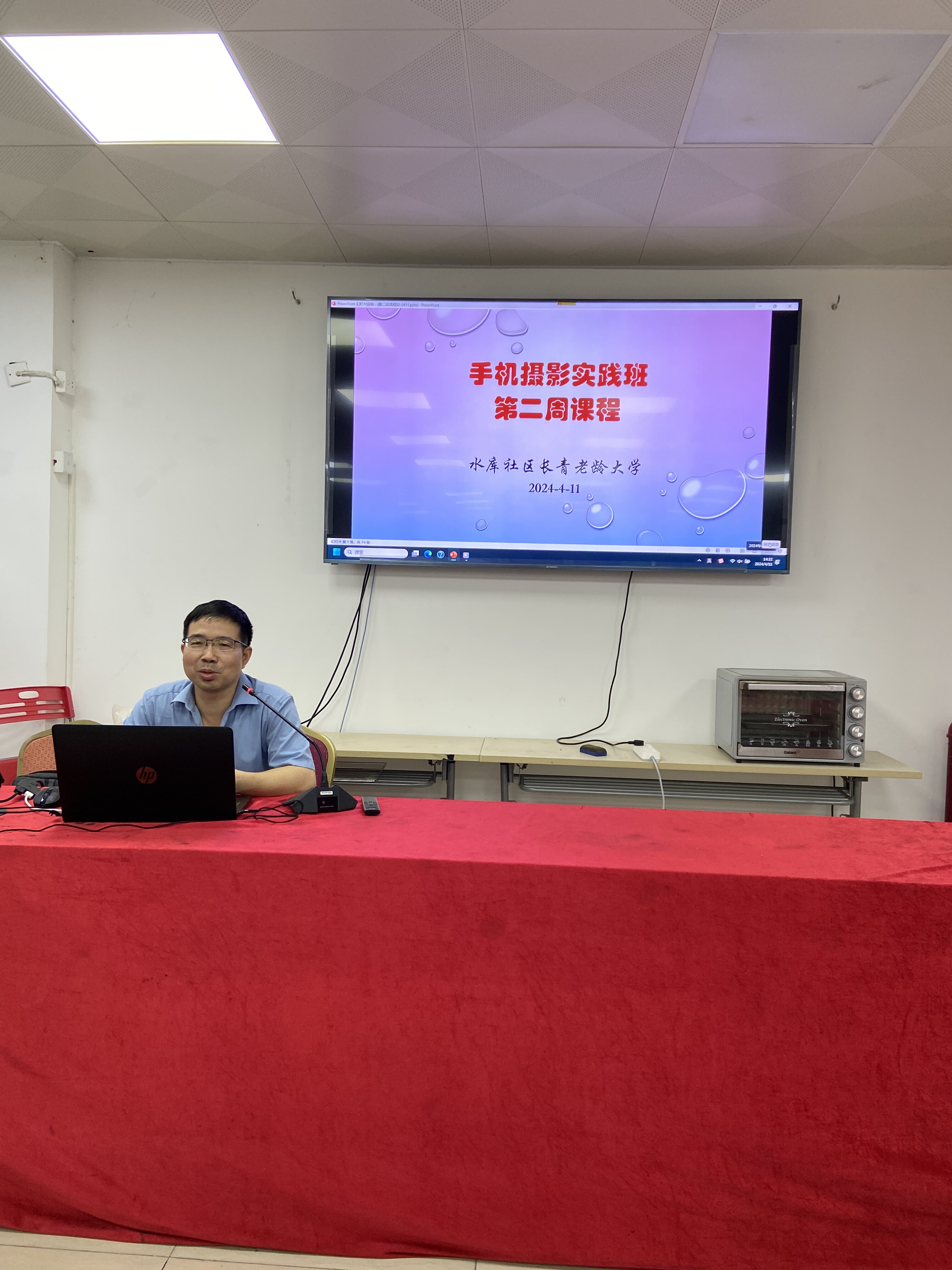 水库社区讯:为满足社区居民的需求,丰富社区中老年朋友的精神和文化生活,学习和掌握基本摄影技术,水库社区于2024年4月11日开展长青老龄大学摄影实践班,此次为课程第二节。