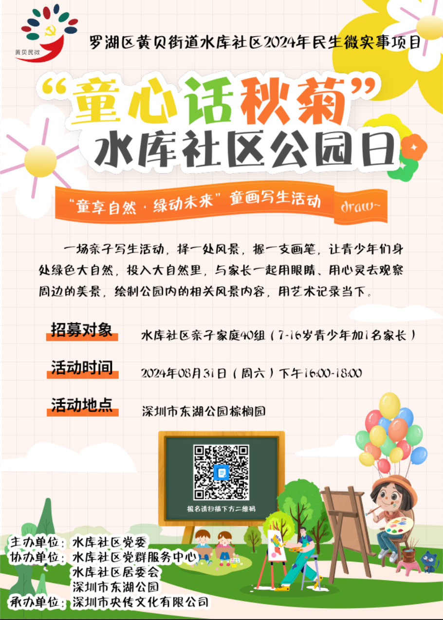 【活动通知】水库社区民生微实事项目《“童心话秋菊”水库社区公园日》——“童享自然·绿动未来”童画写生活动