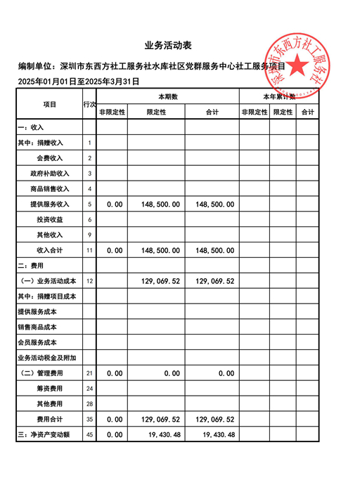 罗湖区黄贝街道水库社区党群服务中心社工2025年第一季度业务活动公示