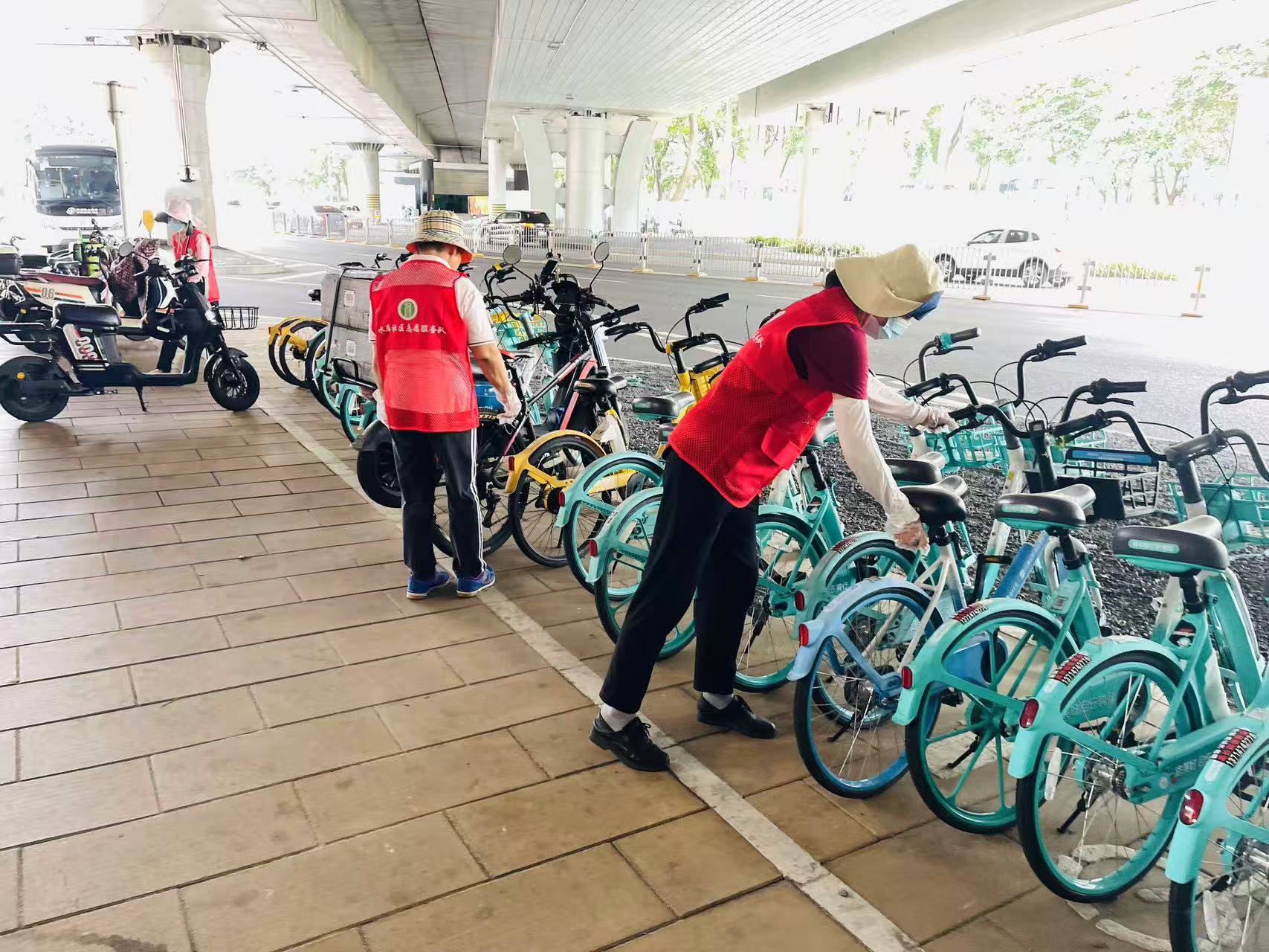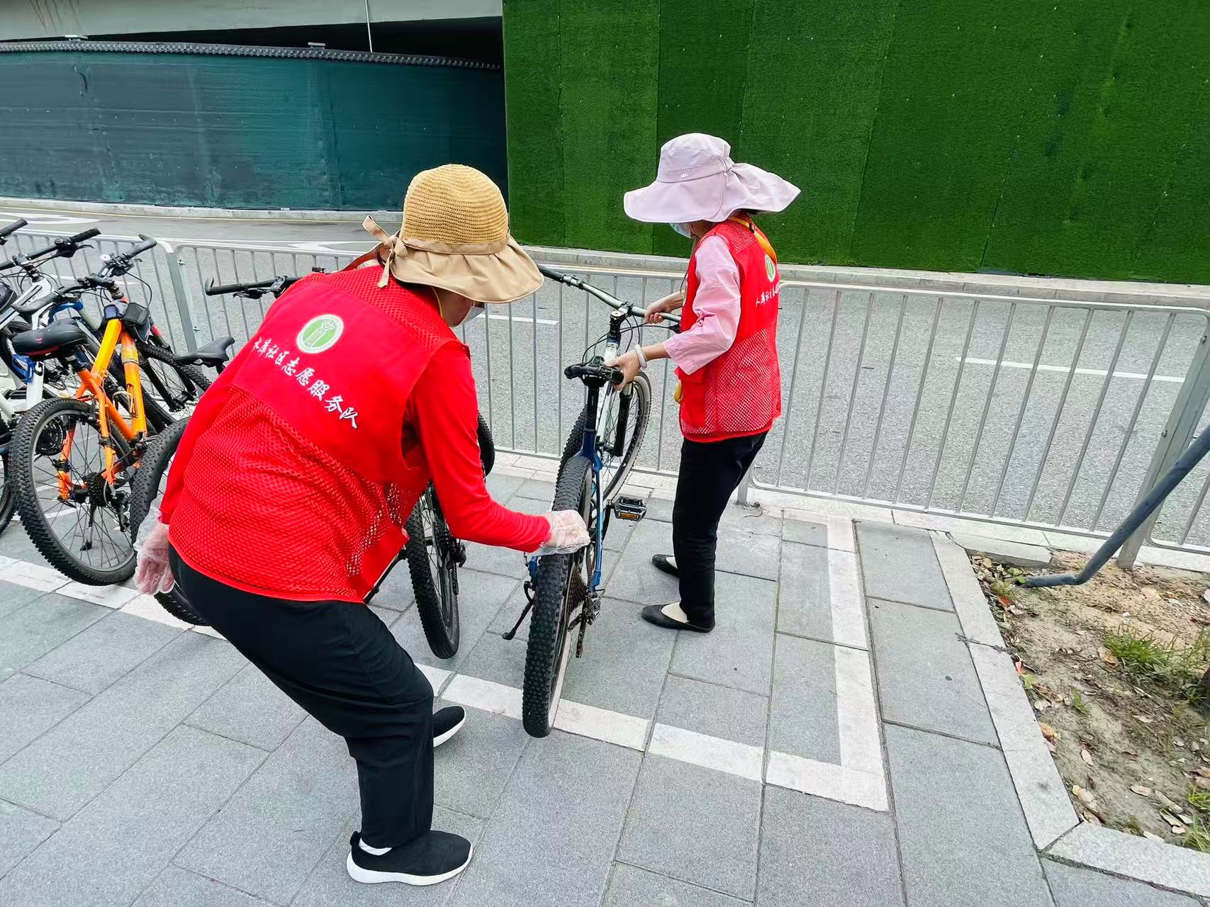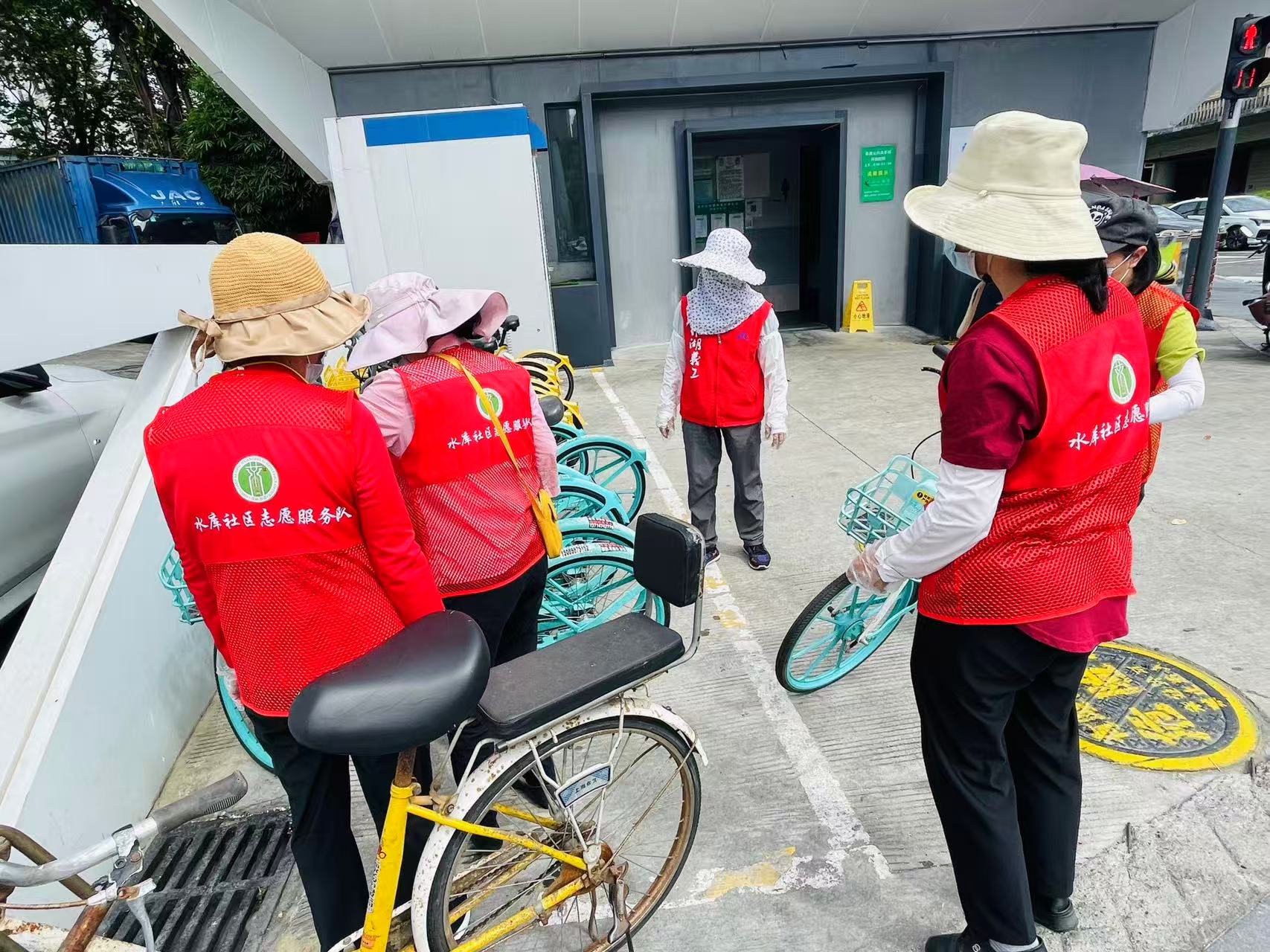 水库社区讯:为营造整洁、有序的社区环境,倡导文明停放电动车、自行车,水库社区于2025年5月27日下午组织辖区志愿者开展共建洁美街区志愿服务活动。活动中,志愿者们重点对宁水花园、深圳市第二实验学校,以及东湖公园周边等重点区域开展集中整治。对乱停乱放的电动车、自行车规整,将占道、随意停放的车辆统一挪移至指定停车区域,并摆放整齐。