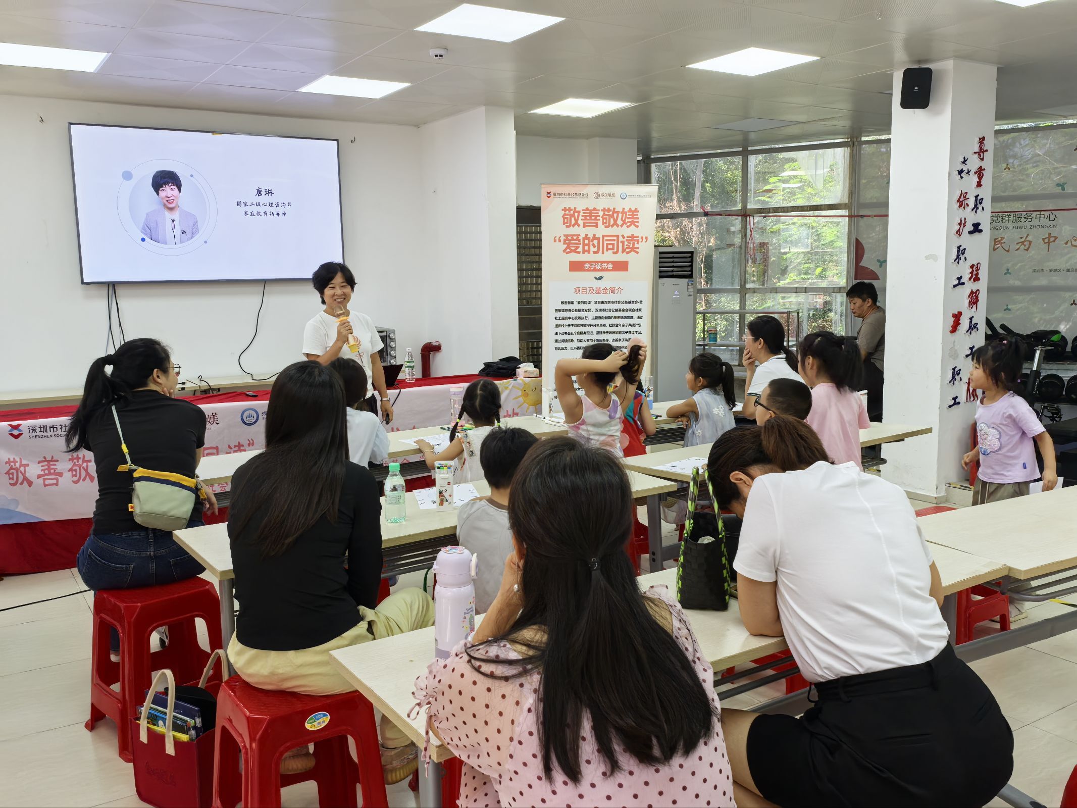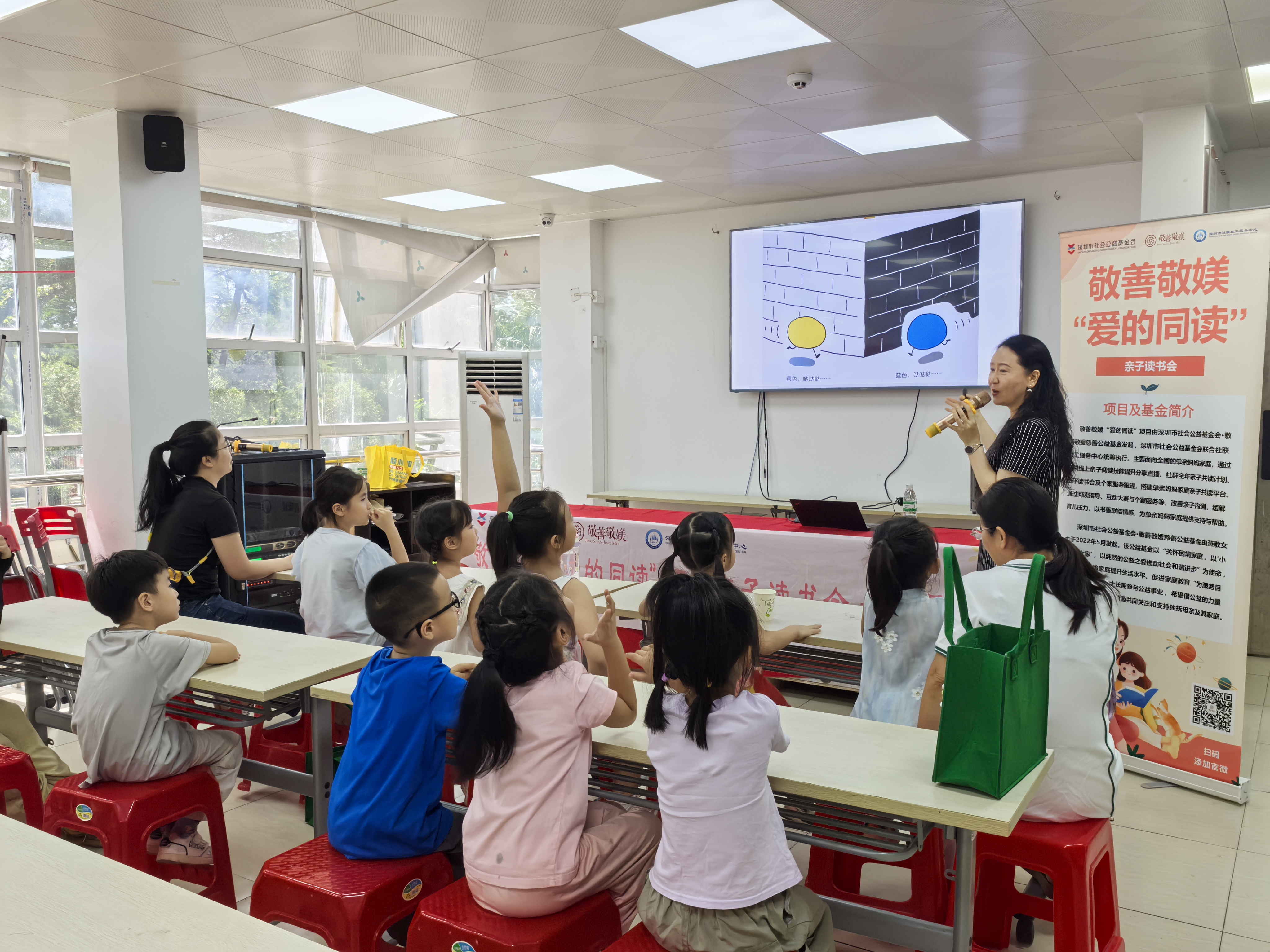 水库社区讯:绘本共读,被教育学者与心理学家一致认为是成本最低、效果最显著的亲子互动路径。一本薄薄的图画书,既能激活孩子的语言、想象与情绪管理中枢,也能在依偎翻页的十分钟里,为家长和孩子建立安全、专注的情感联结。8月10日上午,在水库社区党委支持下,深圳市东西方社工服务社驻水库社区党群服务中心社工联合敬善敬媄慈善公益基金共同开展“书声传情,亲子同行”水库社区共读主题活动日。本次活动以创意绘本《跑跑镇》为核心,面向辖区3岁以上的亲子家庭,现场设置绘本共读、心理沙龙、延伸互动三大环节,旨在用一本薄薄的图画书,撬动亲子之间厚厚的爱。