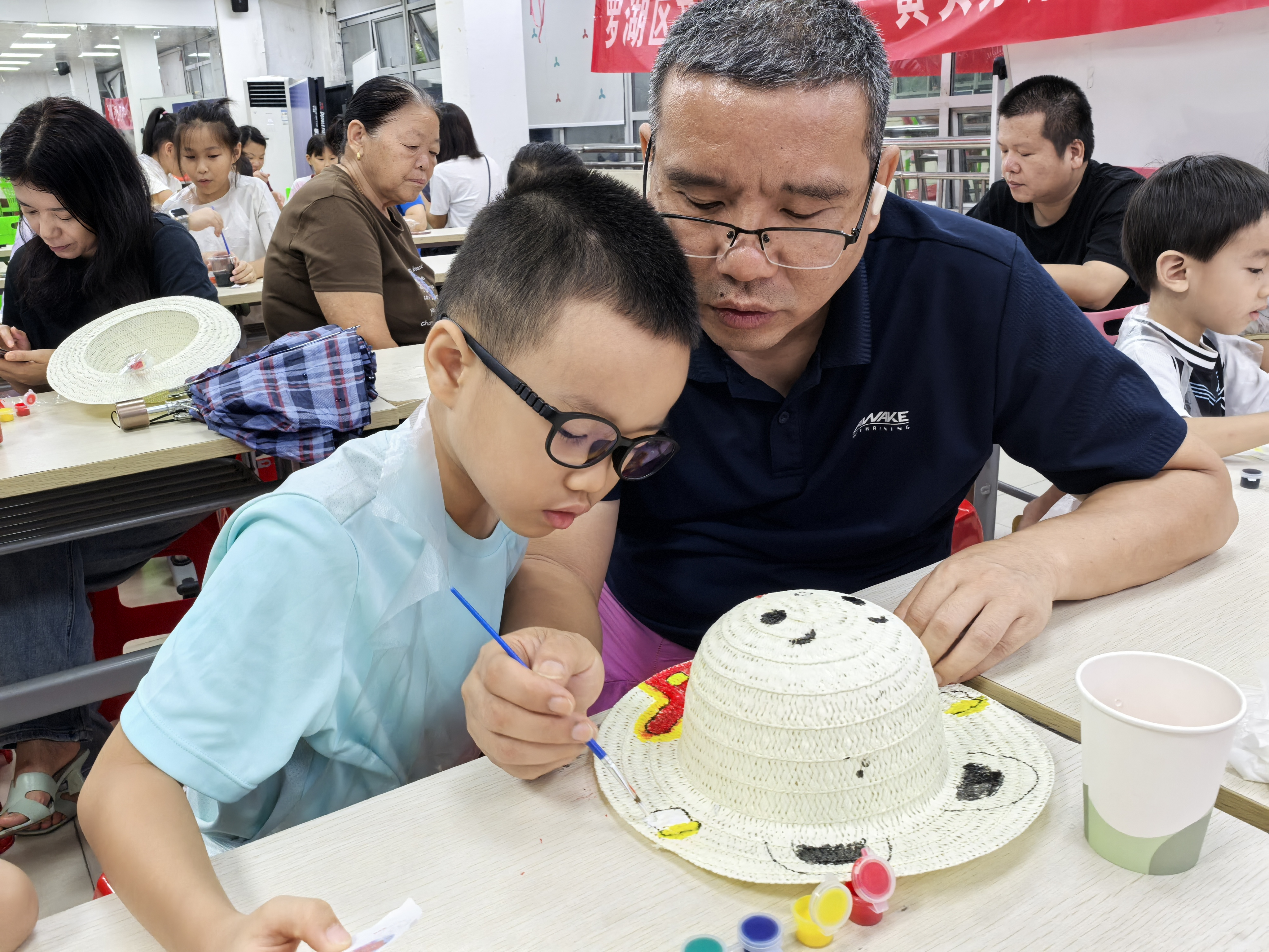 经过一个小时的创作,原本素净的草帽变成了一件件独特的艺术品。有的绘着憨态可掬的卡通形象,有的点缀着清新雅致的花草,每一顶都承载着孩子们的奇思妙想和亲子间的甜蜜互动。
