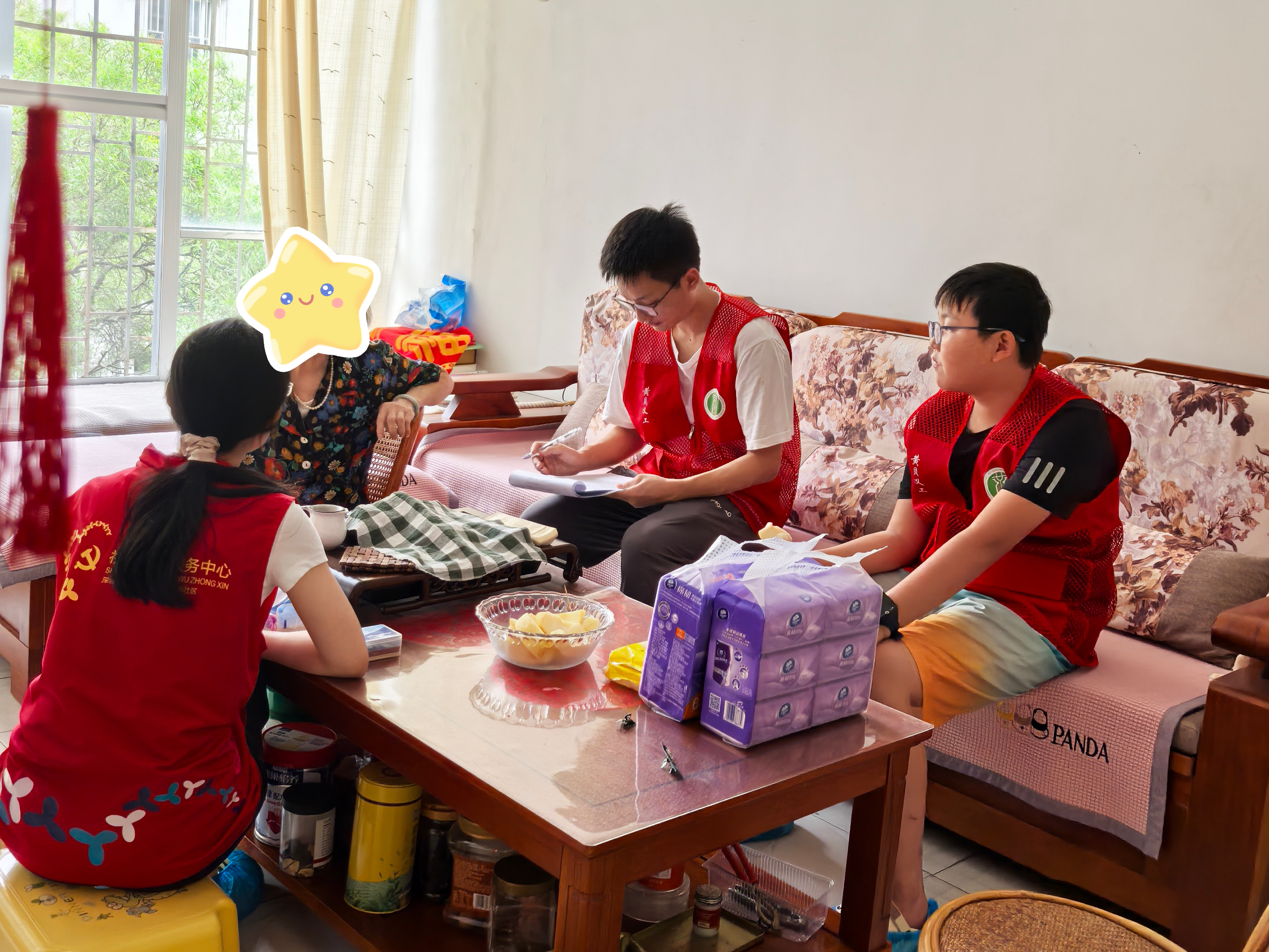 交谈中,青少年志愿者们还不忘结合实际情况贴心叮嘱:“台风雨天出门小心路滑”“蚊虫病毒严重,注意花瓶积水”“注意用电用气安全”“陌生电话别轻信,守住养老钱”,老人们听着这些暖心的话语,笑容满面,连连点头。