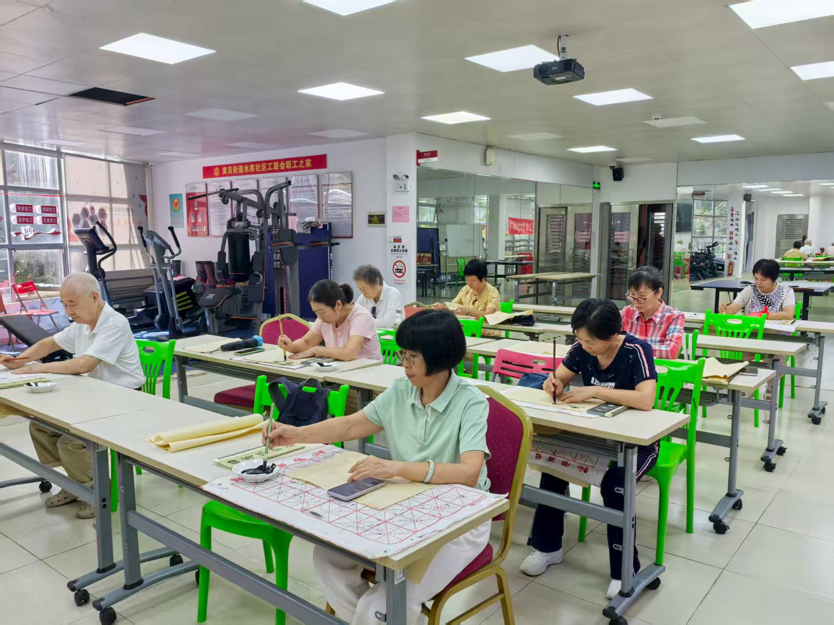 水库社区讯:2025年9月1日下午,水库社区三楼活动室墨香四溢,暂停了一个多月的毛笔书法班正式重启。正式开课之前,刘老师表扬了班级两位骨干学员,在暑假期间义务教水库社区小朋友练习毛笔握笔,字帖临摹等,暑假教学也得到了小朋友家长和社区的一致肯定,这两位学员把自己的所学知识传递给他人,这种做法非常值得赞扬。新学期书法班课程将继续练好基本功,夯实基础为主,课程也会融入四字词语、名言警句、传统楹联等内容,兼顾实用性与文化性。