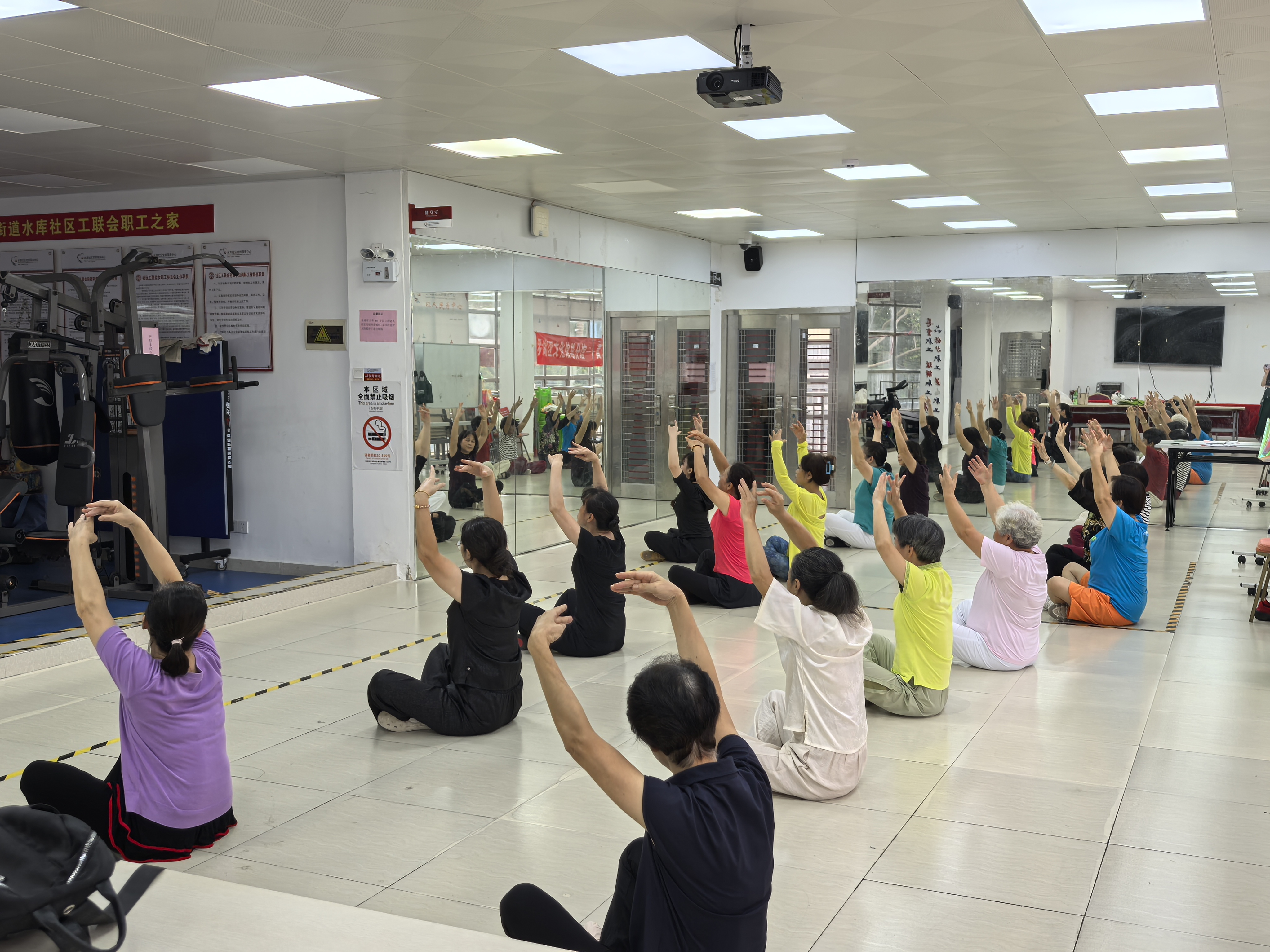 2025年10月16日上午,水库社区在三楼活动室开展长青老龄大学民族舞训练班,本次为第四节。