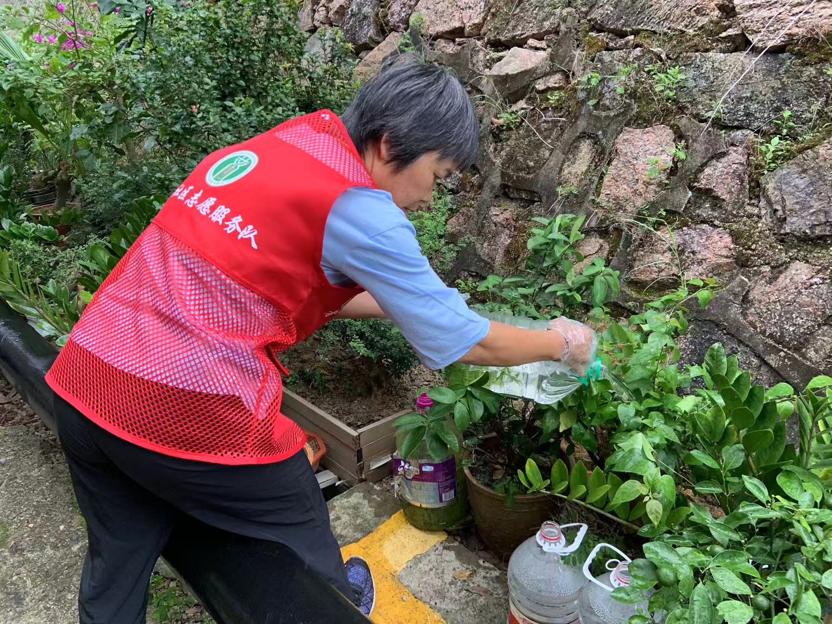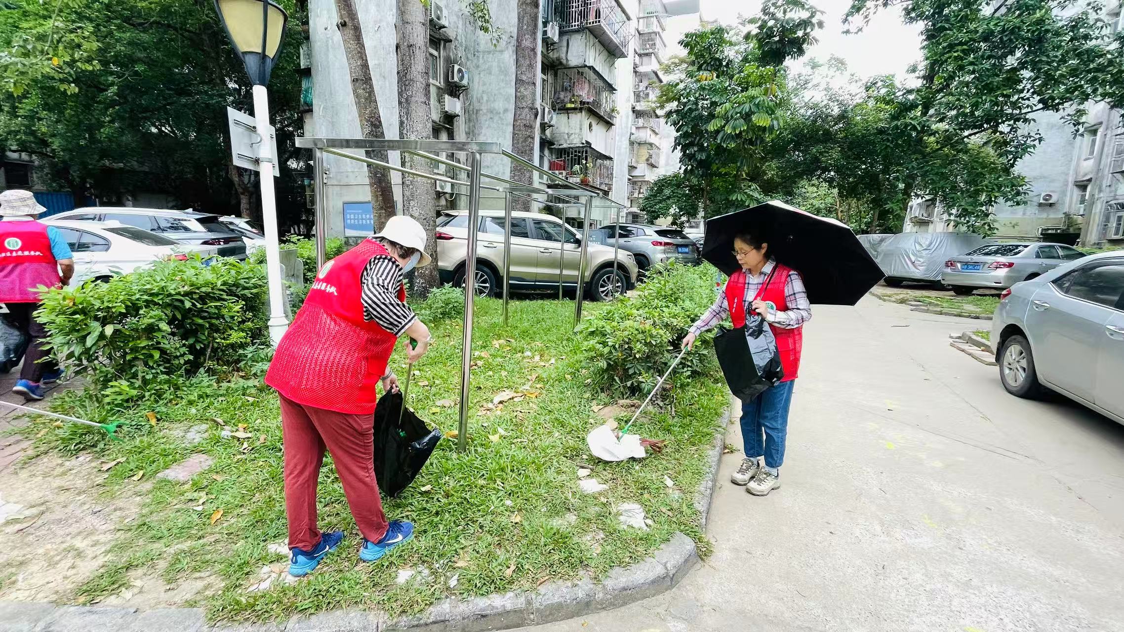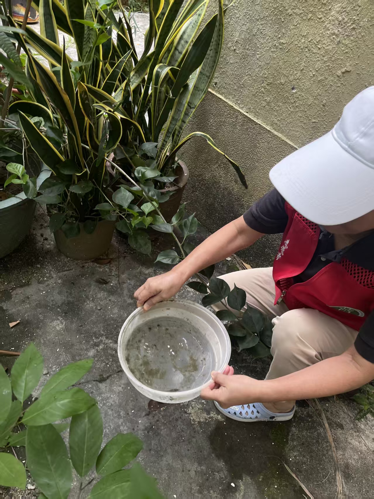 水库社区讯:2025年10月21日下午,水库社区开展聚焦垃圾清洁与基孔肯雅热防控的爱卫志愿服务活动。十几名志愿者分成“清洁队”和“防蚊队”同步行动。“清洁队”带着夹子、垃圾袋,沿着小区主干道和绿化带“地毯式”巡查,将隐藏在草丛里的零食袋、烟头,以及单元门口堆积的垃圾逐一清理;“防蚊队”则重点排查居民楼阳台、门口花池菜地,帮助居民倾倒花盆托盘、水桶里的积水,以防蚊虫滋生。