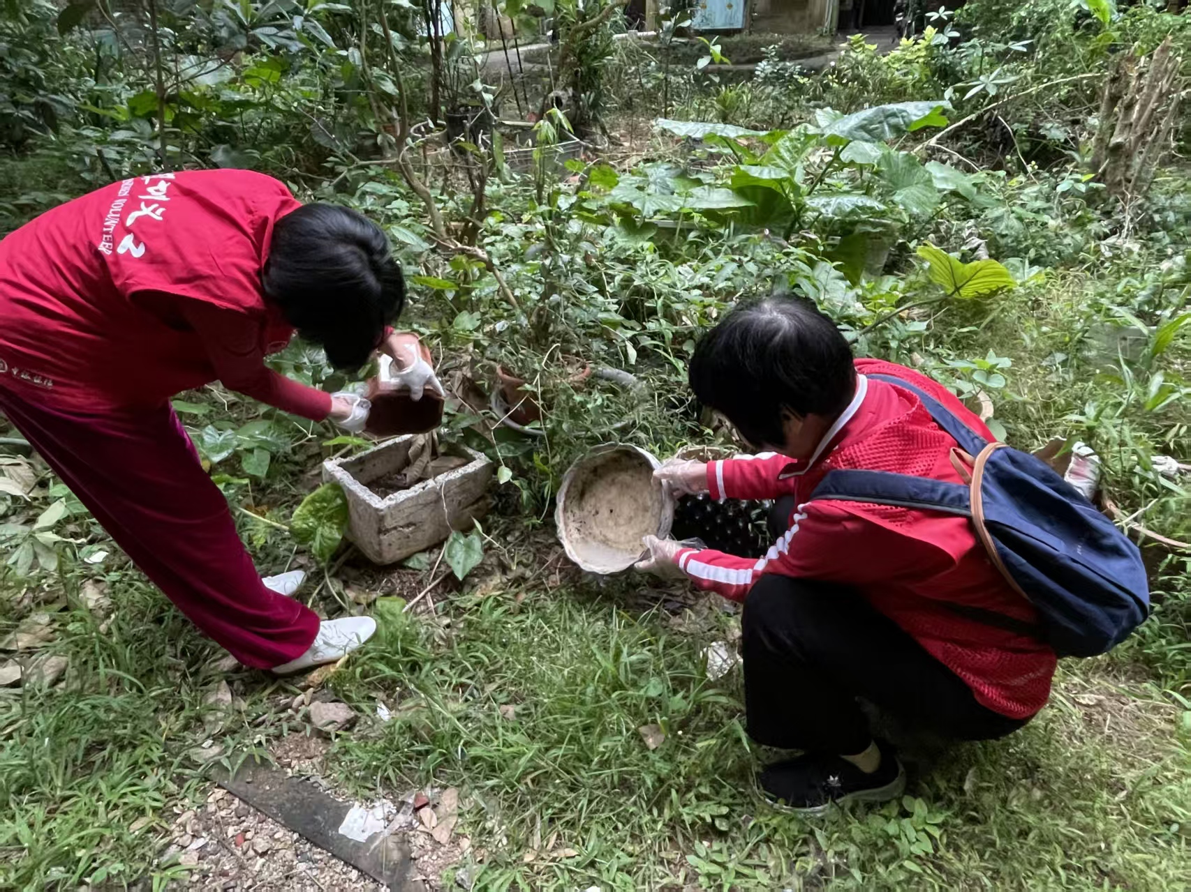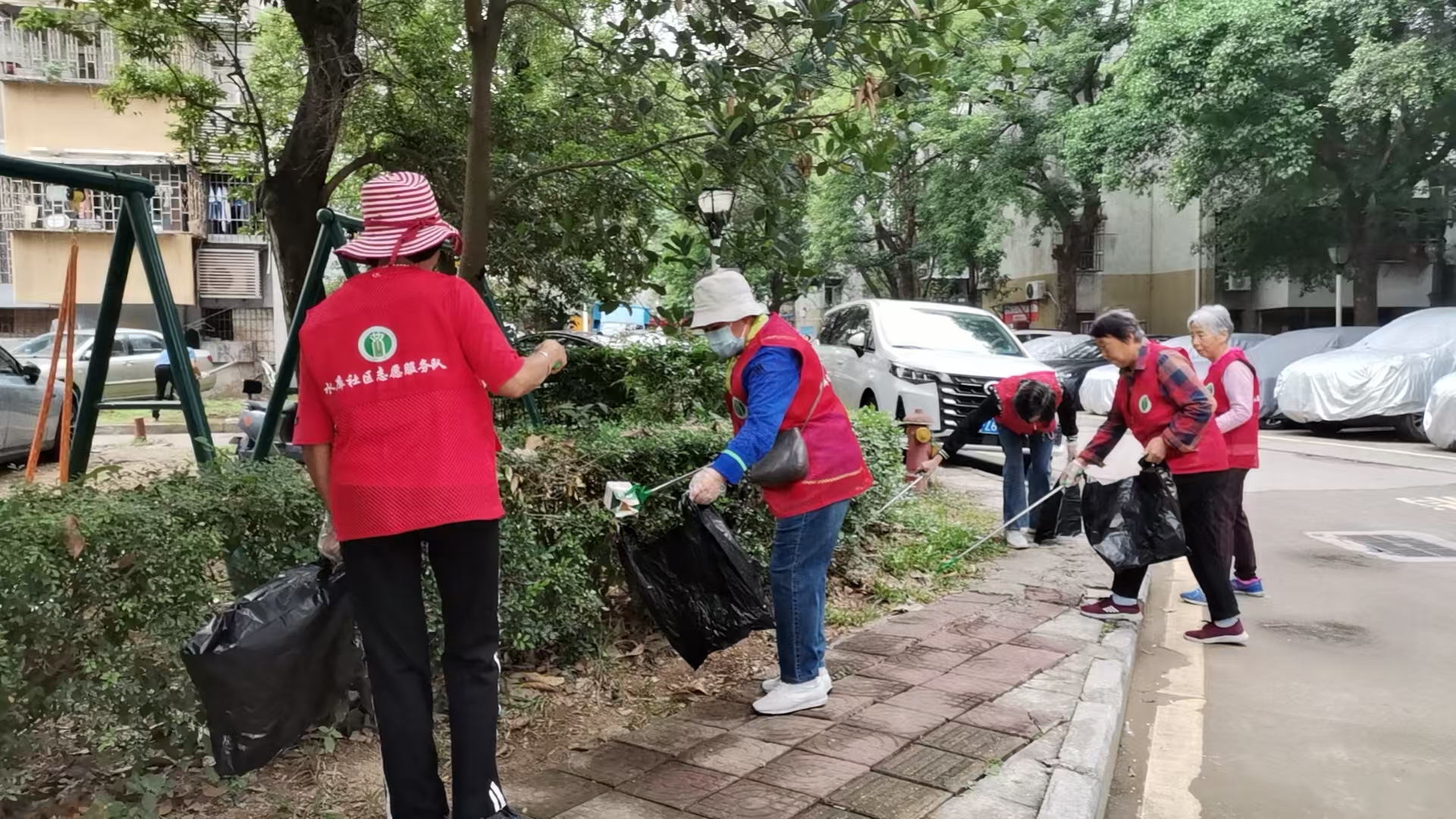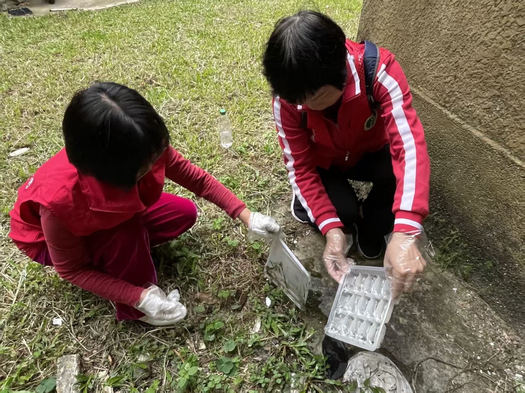 水库社区讯:2025年10月28日下午,水库社区开展聚焦垃圾清洁与基孔肯雅热防控的爱卫志愿服务活动。十几名志愿者分成“清洁队”和“防蚊队”同步行动。“清洁队”带着夹子、垃圾袋,沿着小区主干道和绿化带“地毯式”巡查,将隐藏在草丛里的零食袋、烟头,以及单元门口堆积的垃圾逐一清理;“防蚊队”则重点排查居民楼阳台、门口花池菜地,帮助居民倾倒花盆托盘、水桶里的积水,以防蚊虫滋生。