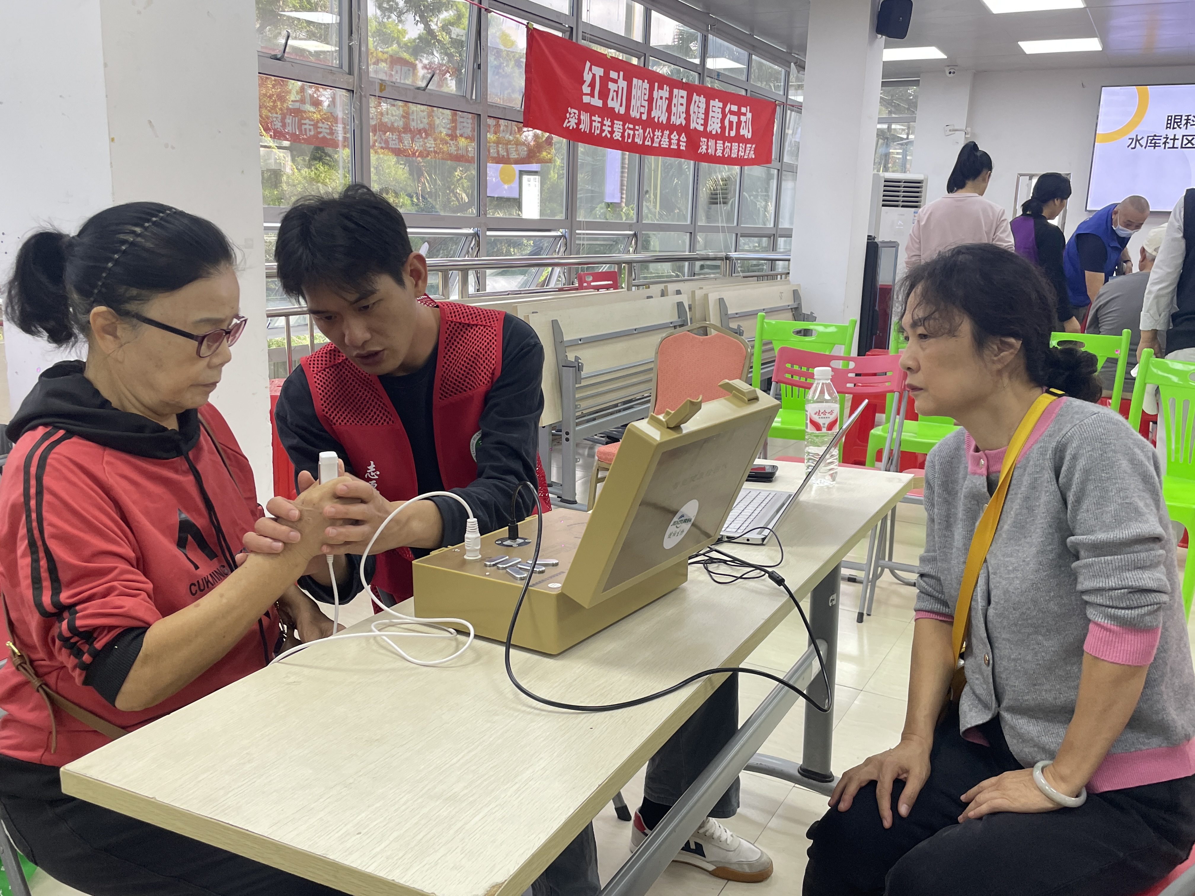 水库社区讯:为关爱社区居民眼部健康与骨骼健康,提升大家的健康防护意识,11月5日,在水库社区党委的大力支持下,深圳市东西方社工服务社驻水库社区党群服务中心社工携手专业医疗团队开展眼科与骨密度公益义诊活动,将优质医疗服务送到居民“家门口”,吸引了众多中老年群体积极参与。