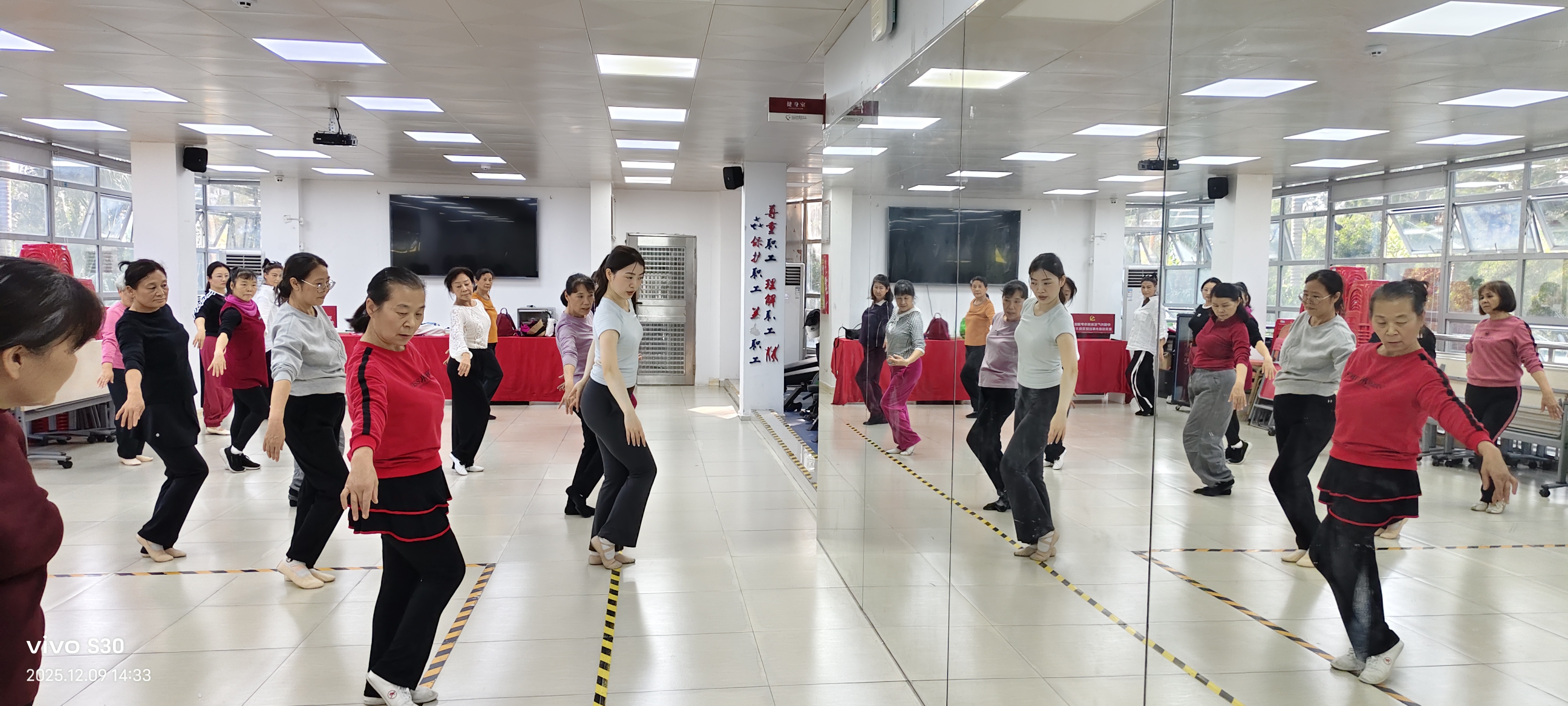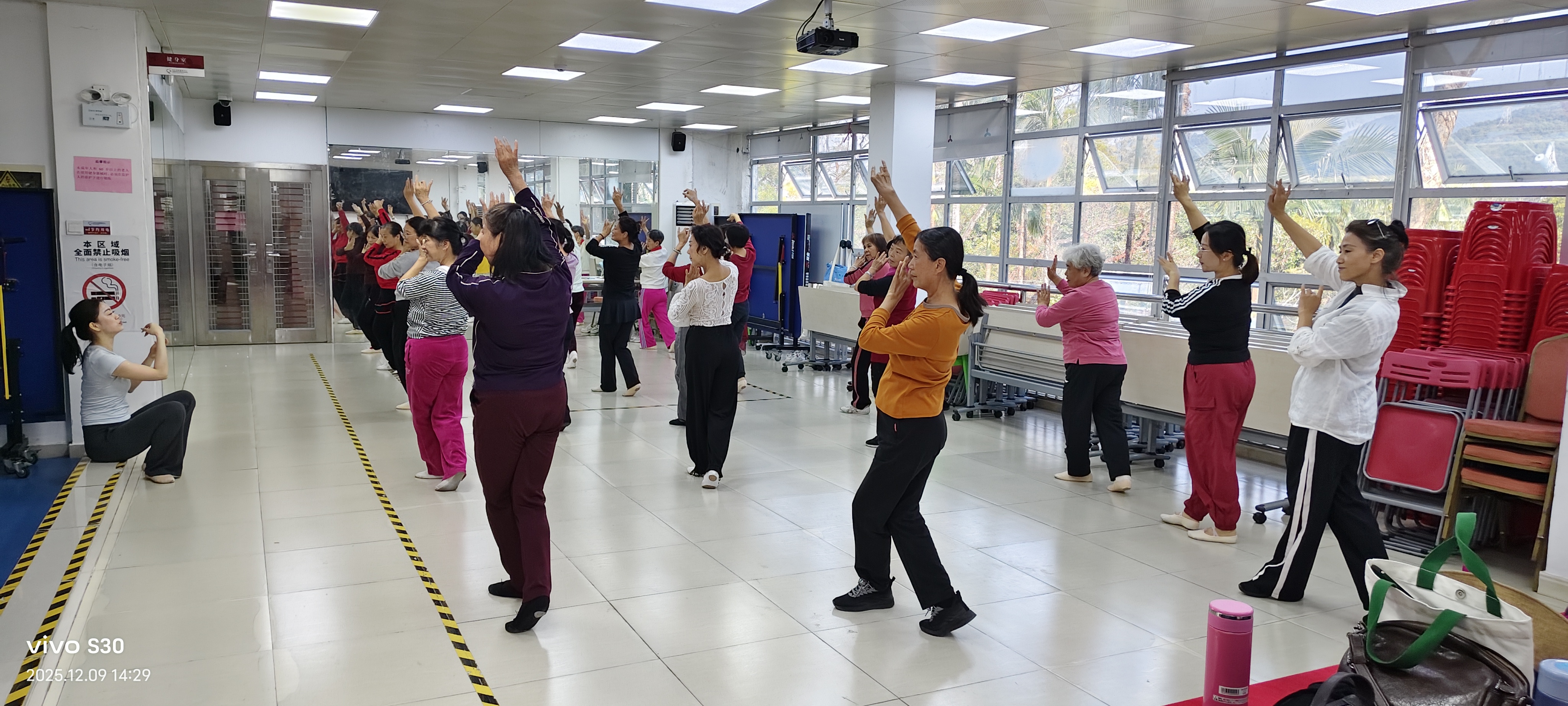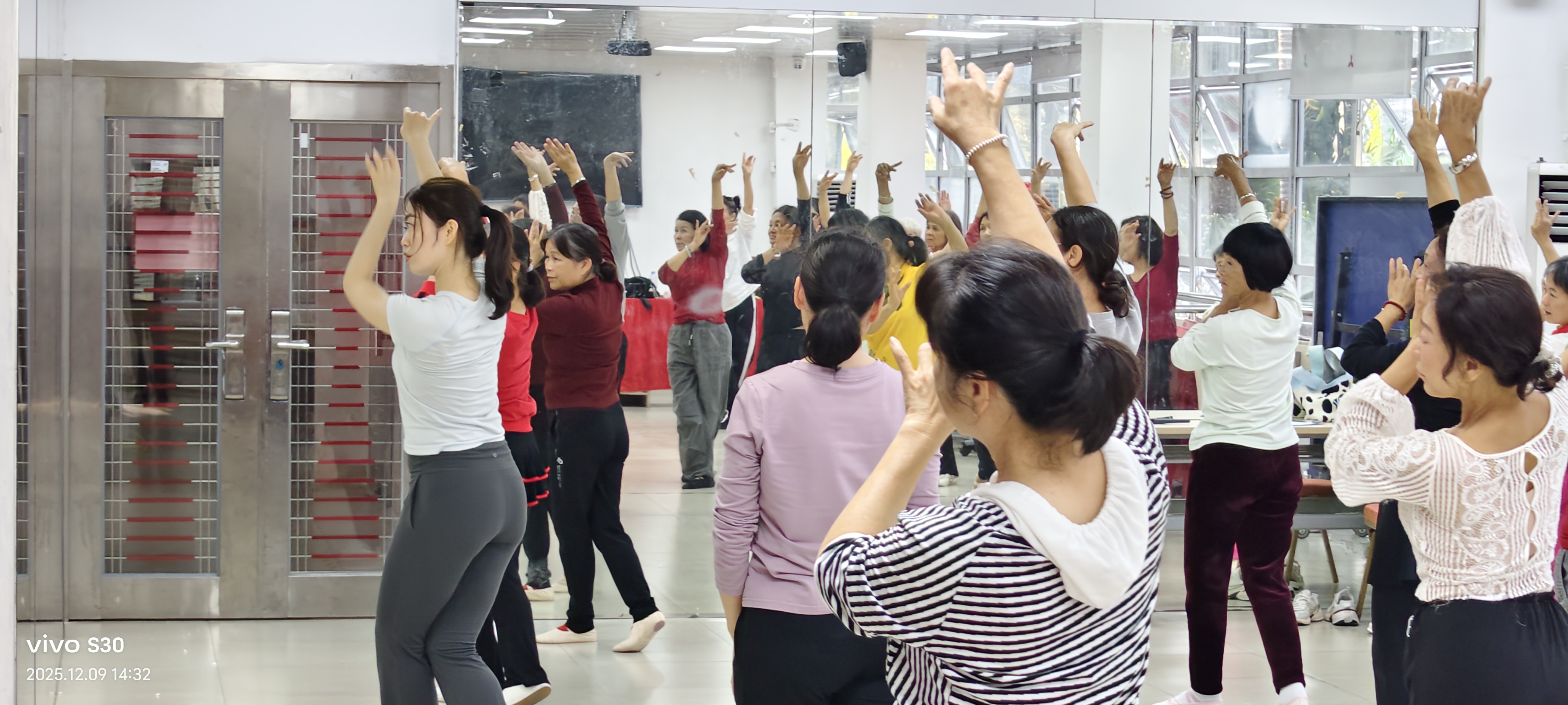 水库社区讯:2025年12月9日下午,水库社区在三楼活动室开展长青老龄大学民族舞训练班,本次为第十二节。