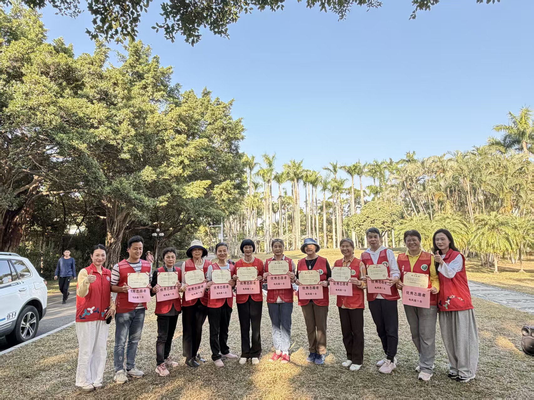 水库社区:讯心怀热爱践初心,情暖人间绽善芒。为弘扬“奉献、友爱、互助、进步”的志愿精神,表彰2025年度为社区发展默默奉献的优秀志愿者,进一步凝聚社区治理合力,12月12日,在水库社区党委大力支持下,深圳市东西方社工服务社驻水库社区党群服务中心社工精心策划了“爱心汇聚,志愿荣光”2025年度志愿者表彰主题活动。本次活动创新采用户外野餐形式,20 名志愿者齐聚深圳市东湖公园,在自然中共享荣誉、共话温情。