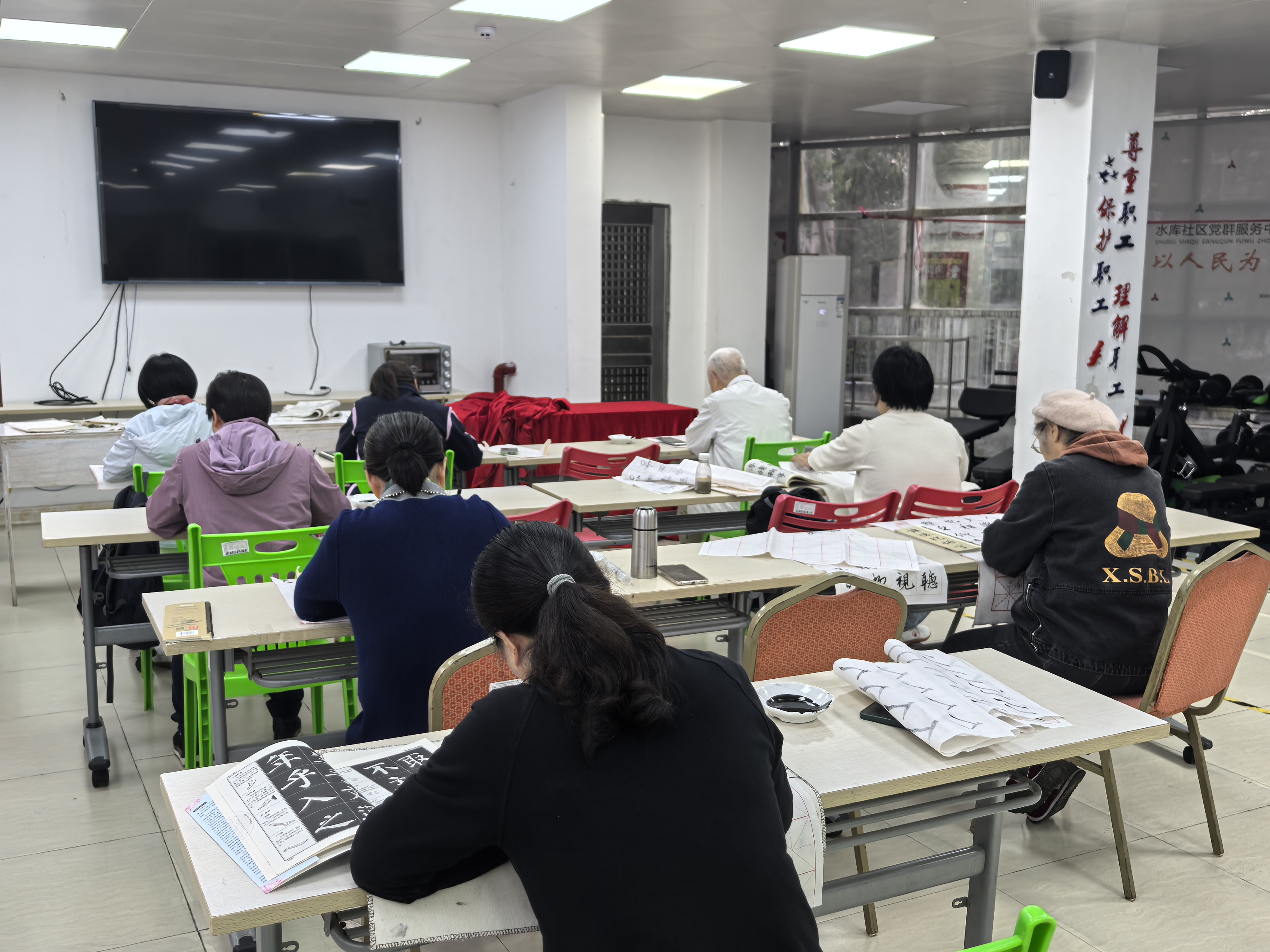 水库社区讯:2025年12月29日下午,水库社区三楼活动室开展中老年书法班活动。