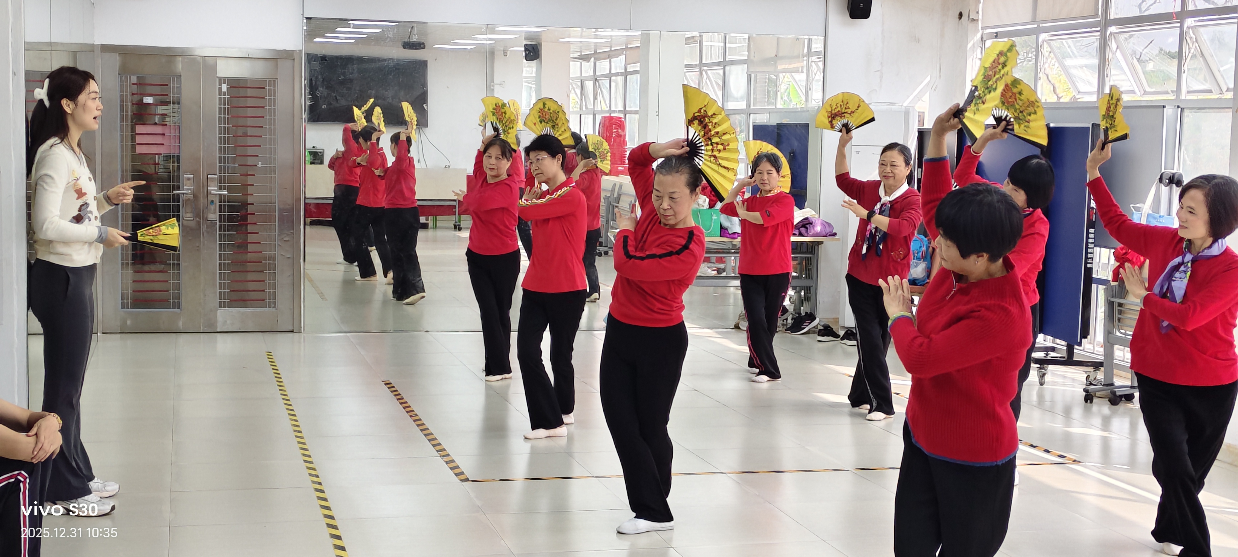 水库社区讯:2025年12月31日上午,水库社区在三楼活动室开展长青老龄大学民族舞训练班,本次为第十六节。