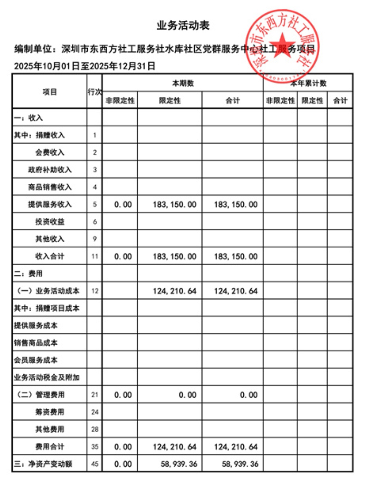 罗湖区黄贝街道水库社区党群服务中心社工2025年第四季度业务活动公示
