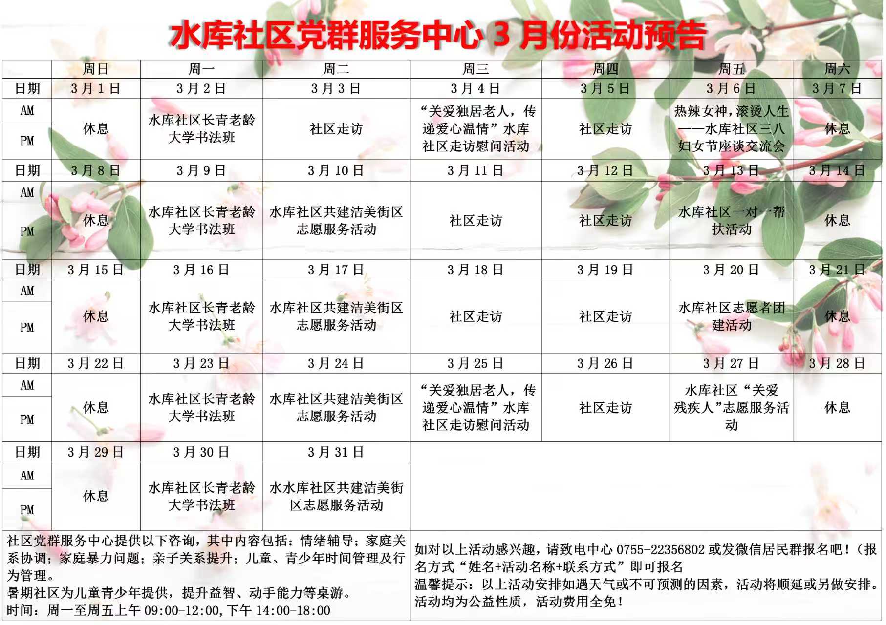 水库社区党群服务中心3月份活动预告