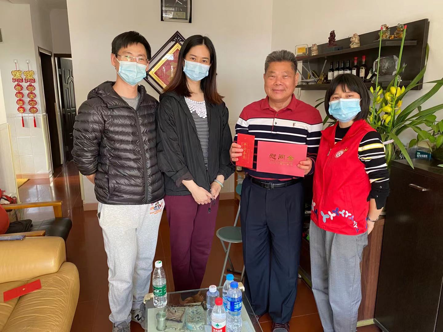 罗湖家园网讯:2021年2月4日下午,深圳市市委党校图书馆党支部书记黄伟群一行看望慰问文华社区党员老同志,社区领航团队第一书记欧志晅同志、费伟同志、社区党委班子陪同慰问。黄书记和欧委员为他们送上关怀和温暖,并提前送上新春佳节的问候和祝福。