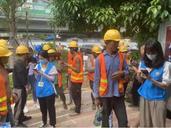 罗湖家园网讯:为提高辖区建筑工地职工对工会的认识,吸引职工入会,扩大组织覆盖面,推进工会会员信息采集和实名认证工作,2021年11月18日上午,由黄贝街道总工会主办、文华社区工联会协办在深南东路深南一号工地开展建筑工人集中入会宣传活动。