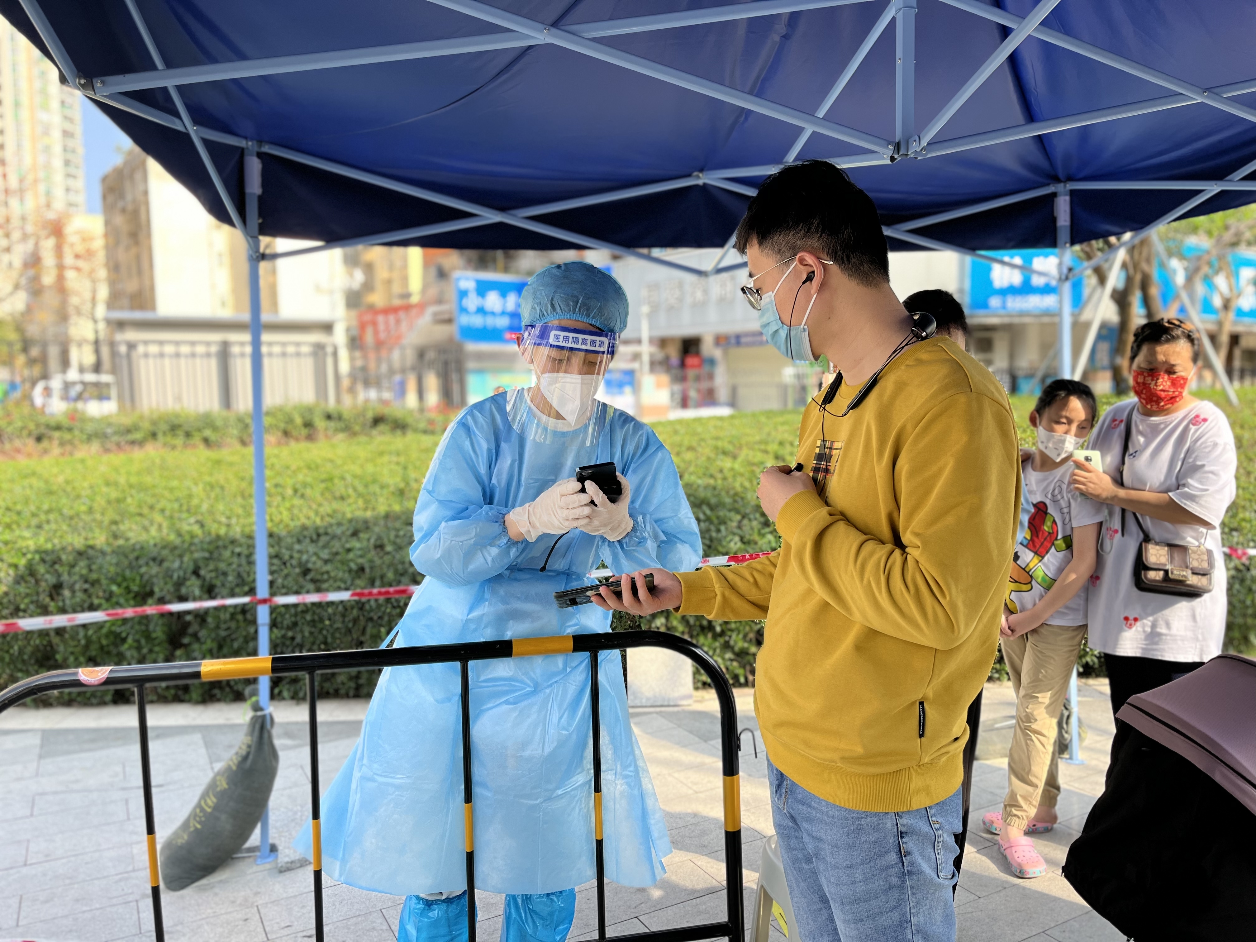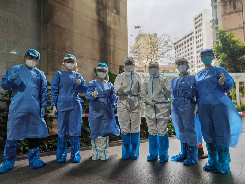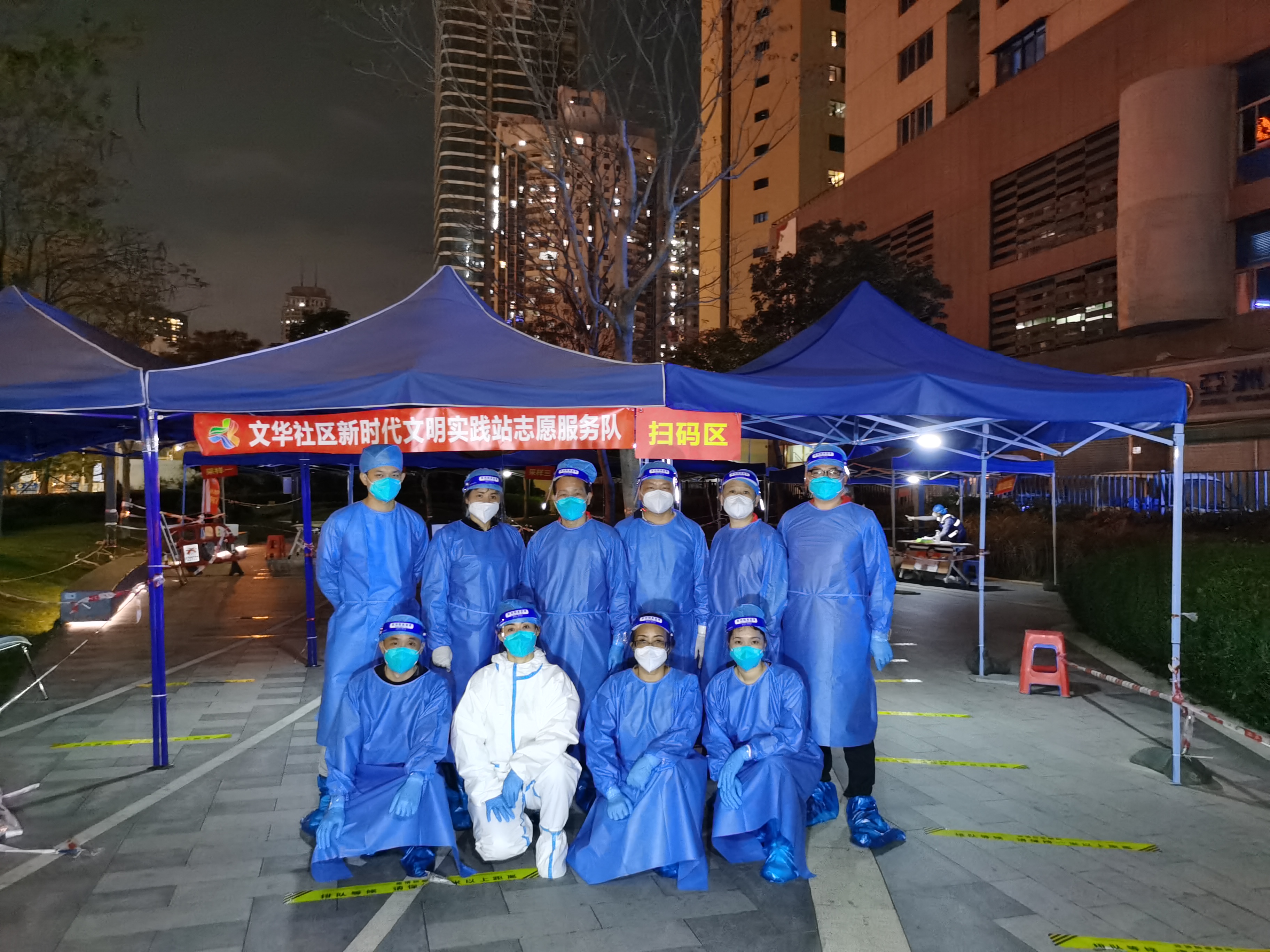 充分发挥党组织的战斗堡垒作用和党员先锋模范作用,按照每个核酸点每日5人为一班次的工作强度,文华一条街、文锦花卉公园、文华大厦地铁口、向西华侨新村等重要一线点位,都留下了党员志愿者“带头示范、冲锋在前”抗击疫情的身影,,他们穿上防护服,戴上面罩和防护手套,为了节省防护装备一站就是连续四个小时,不吃不喝地配合医护人员进行核酸采样的扫码工作、协助社区人员进行查验居民的健康码以及现场秩序的维持。尽管汗水在隔离衣内流淌、面罩起雾看不见脚下的路、喉咙沙哑唯有咽下口水解渴,但党员志愿者们自始至终没有迟疑或者退宿,还是面对微笑耐心地解答和帮助居民完成现场核酸采样的工作,他们不到五分钟就快速学会使用手机操作扫检测码并迅速投入到工作中,为尽力节省居民排队检测时间高强度地运作,居民的一声“谢谢”、“您们辛苦了”就像是炎热天气下的一股凉风涌进心里,让党员志愿者们倍感清凉和感动。