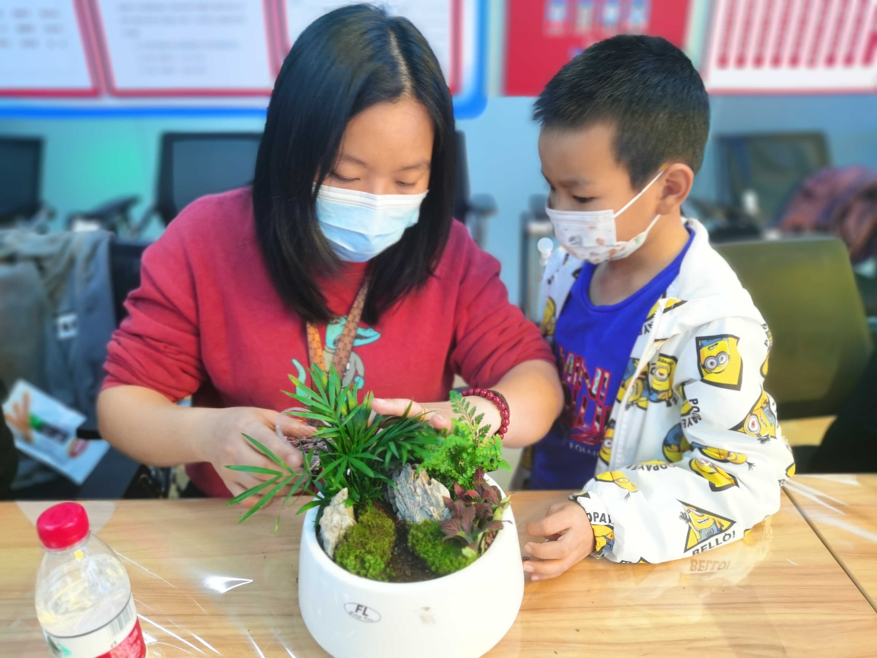 通过此次活动,不仅让亲子们体验到了自己动手创造美的乐趣,培养了孩子们的动手能力和创造思维,增强了亲子之间的互动和交流,还提升了孩子们的盆景艺术审美。学会制作微景观,不仅可以随时随地来点缀自己的居住环境,使家庭生活更增添一份美感和温馨,也使社区家庭更加热爱生活。