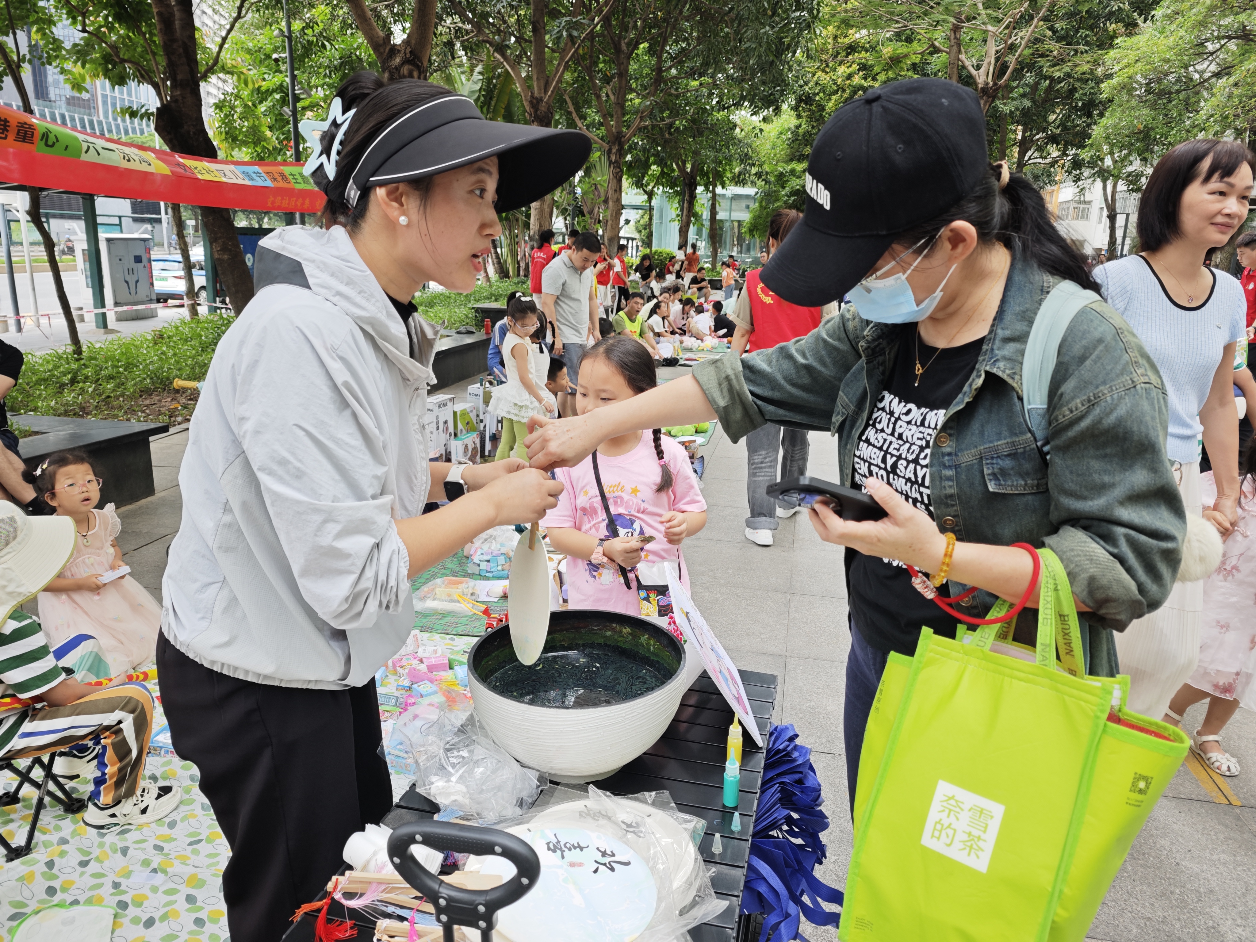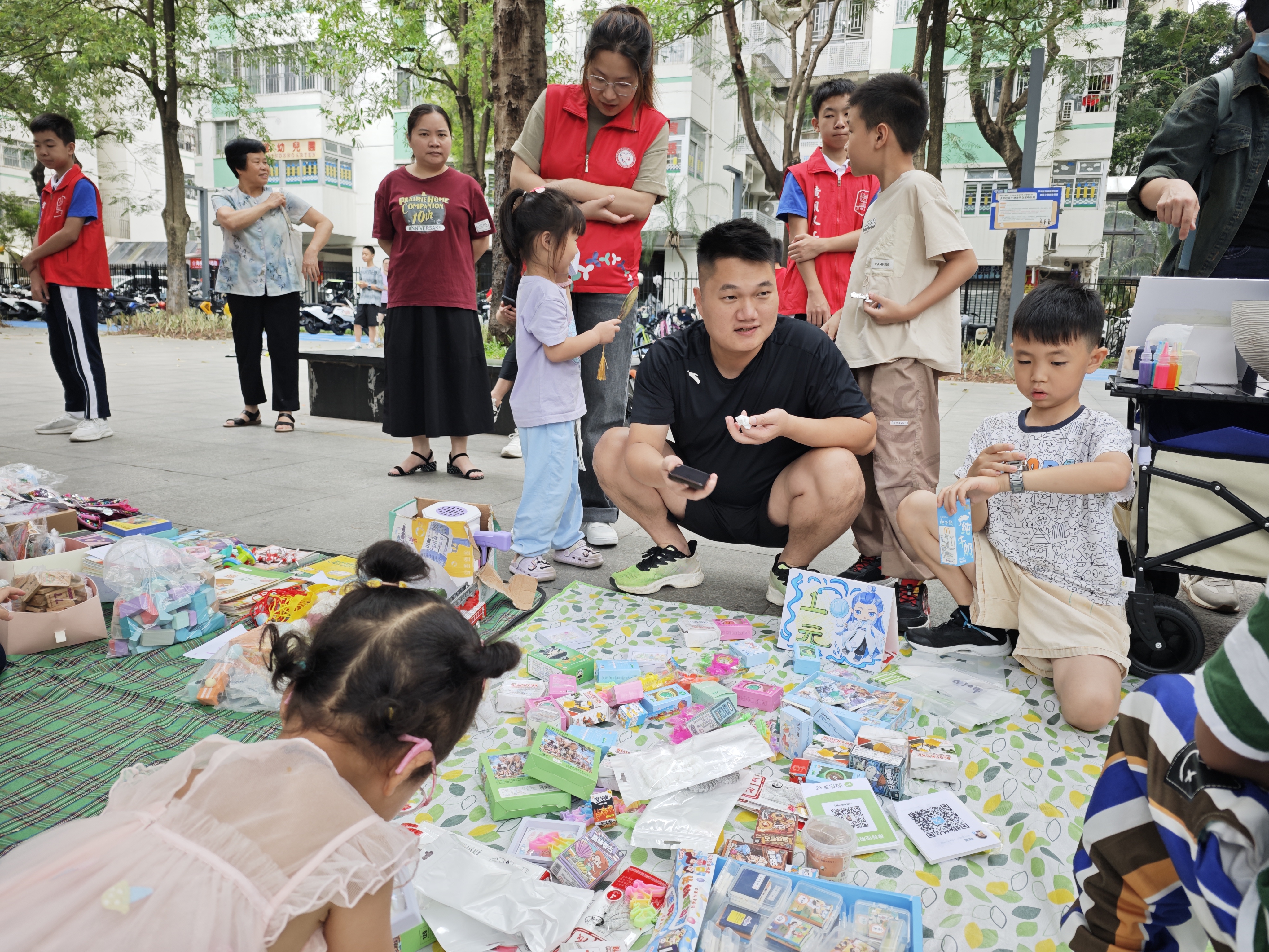 为积极响应“百千万工程”号召,进一步丰富社区青少年的课余生活,培养其团队协作精神。6月1日上午,东西方驻文华社区党群服务中心社工团队于文华社区文体公园内精心策划并举办了“深港童心,六一乐淘”儿童节深港主题跳蚤市场活动。此次活动共吸引了15组家庭踊跃参与,现场气氛热烈,充满了欢声笑语。