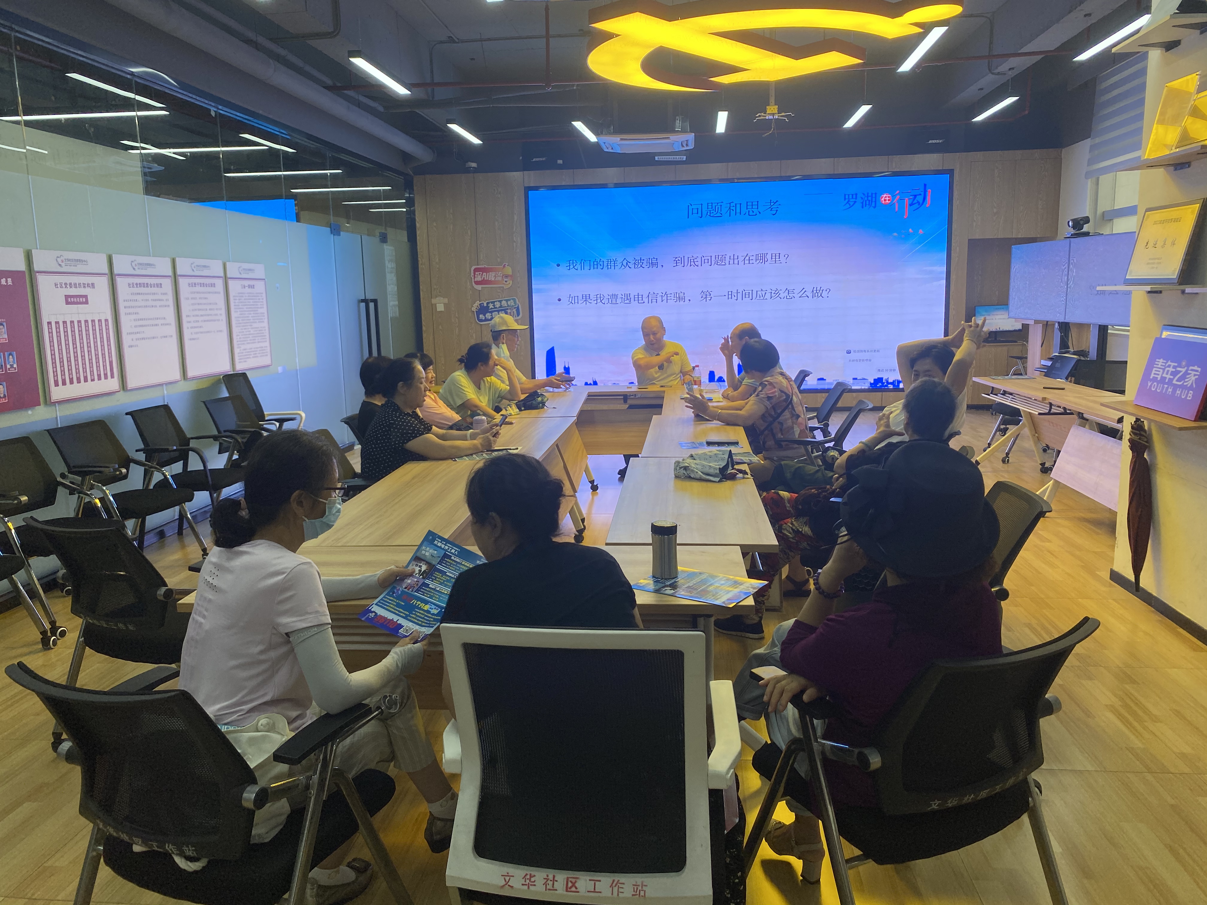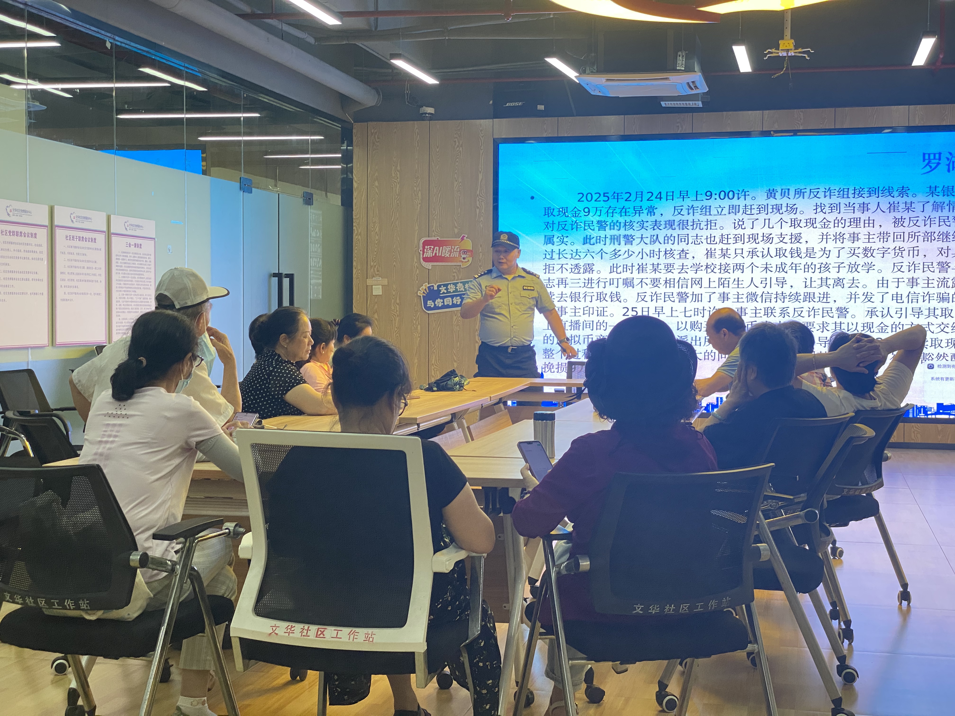 为切实增强辖区老年群体对养老诈骗等违法犯罪行为的防范意识,2025年6月12日下午,东西方驻文华社区党群服务中心社工链接黄贝派出所共同开展筑牢“心”防线,远离“诈”陷阱!—文华社区反诈骗宣传讲座,旨在为社区老年人普及防诈骗知识,助力他们精准识别并有效防范各类养老诈骗陷阱。