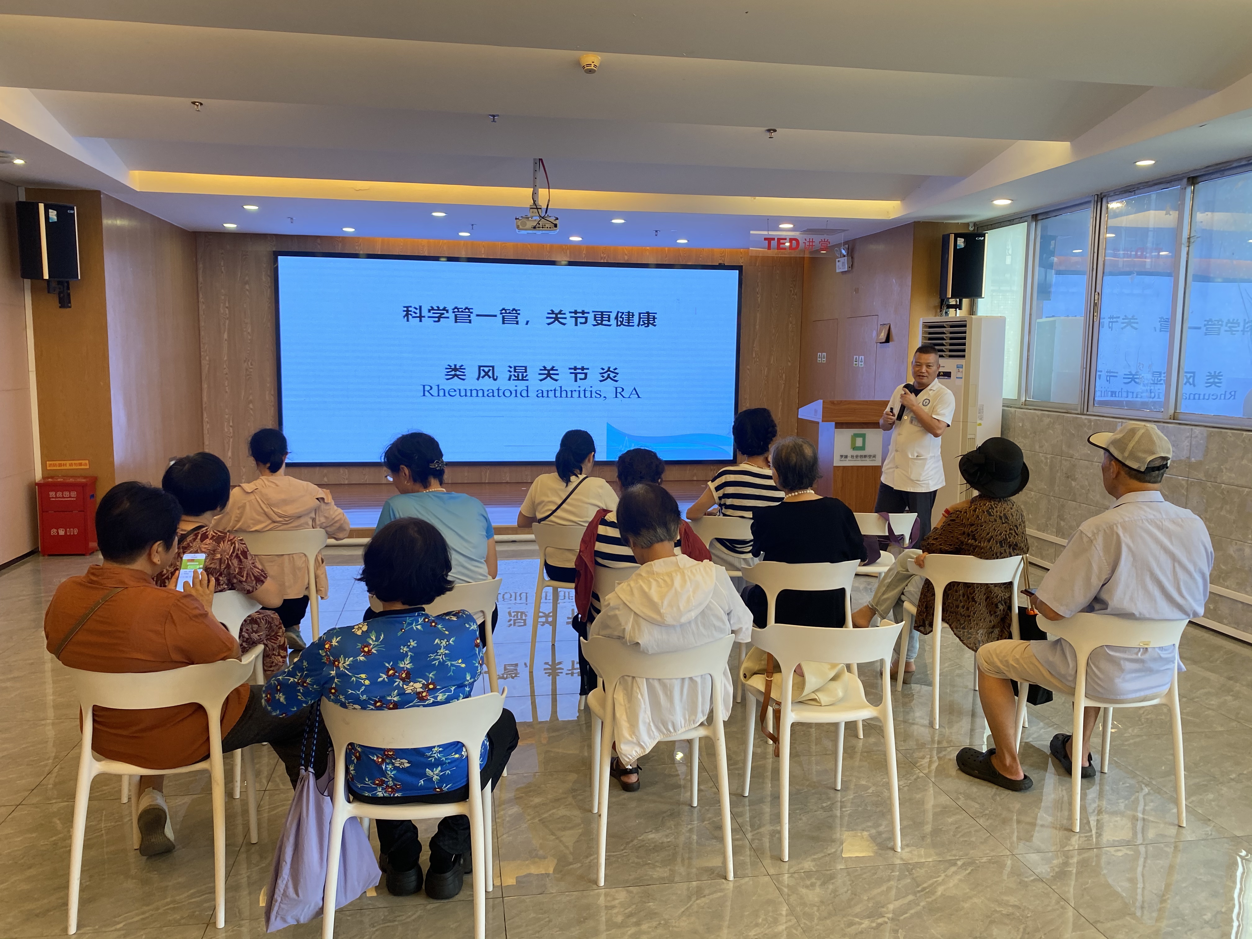 为助力“百千万工程”,提高社区居民的关节健康筑牢防线,2025年6月20日下午,东西方驻文华社区党群服务中心社工团队联合文华社区健康服务中心,以“科学管一管,关节更安全”为主题,旨提高居民对类风湿性关节炎的认识,普及预防与治疗知识,促进病友对类风湿性关节炎疾病健康知识的提升。