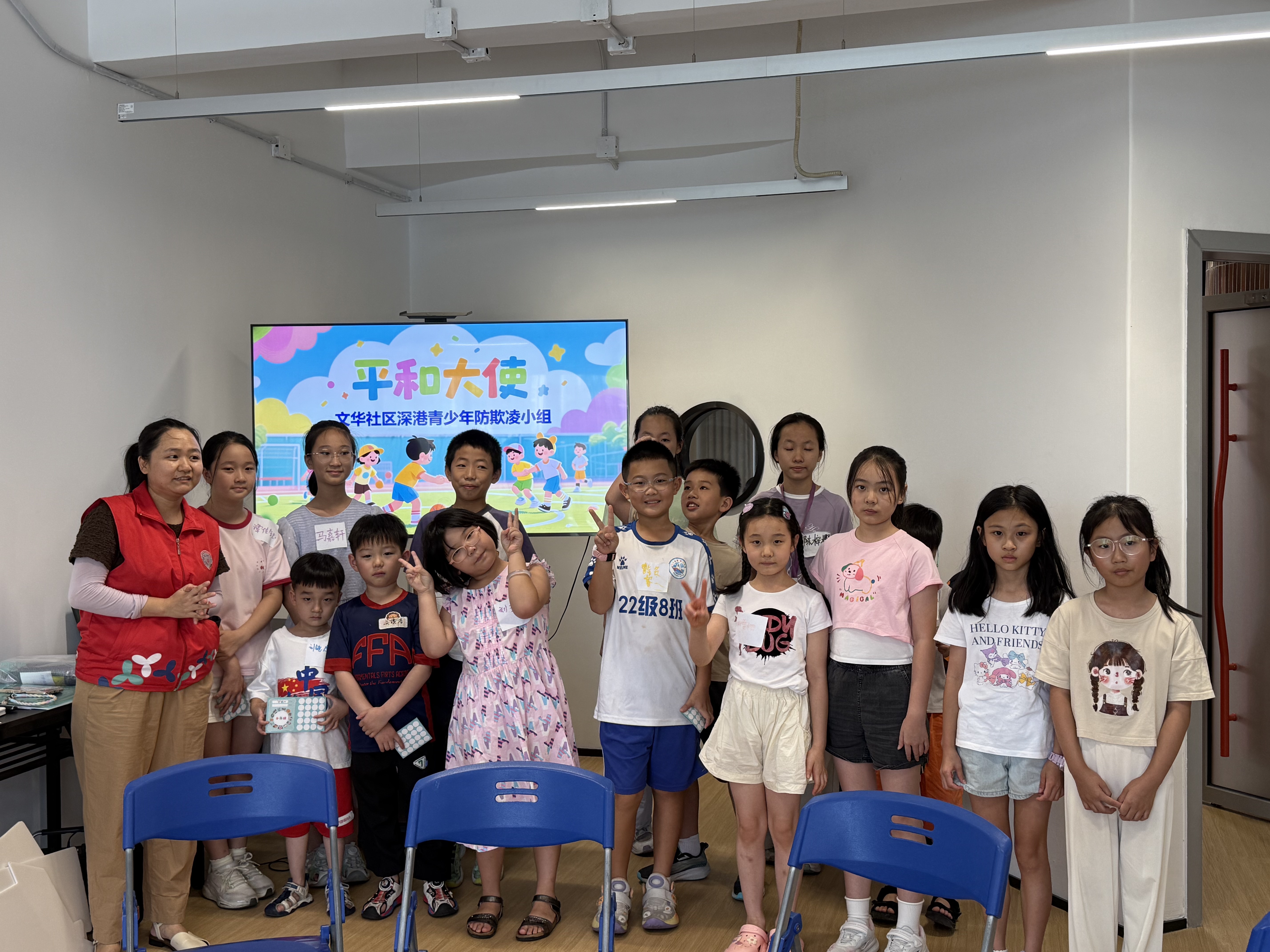 构建和谐人际关系,正成为当代青少年不可或缺的成长养分。7月18日,在文华社区党委的带领下,深圳市东西方社工服务社驻文华社区党群服务中心社工团队联动未保项目资源,精心打造的“平和大使”深港青少年防欺凌小组迎来收官之课。这场面向8-12岁深港学生的小组活动,以趣味互动与知识科普相结合的方式,帮助孩子们识别欺凌行为,增强自我保护意识。