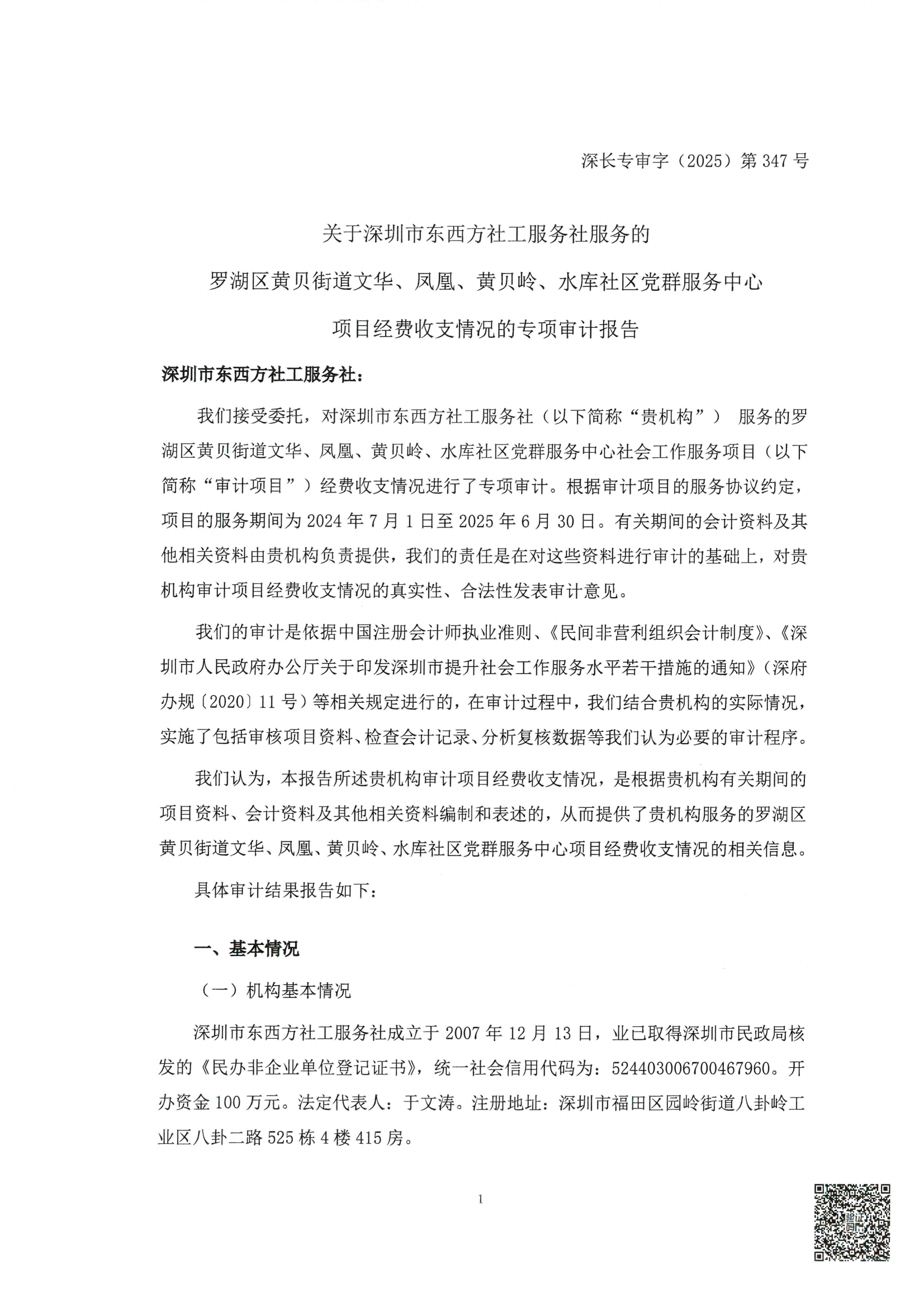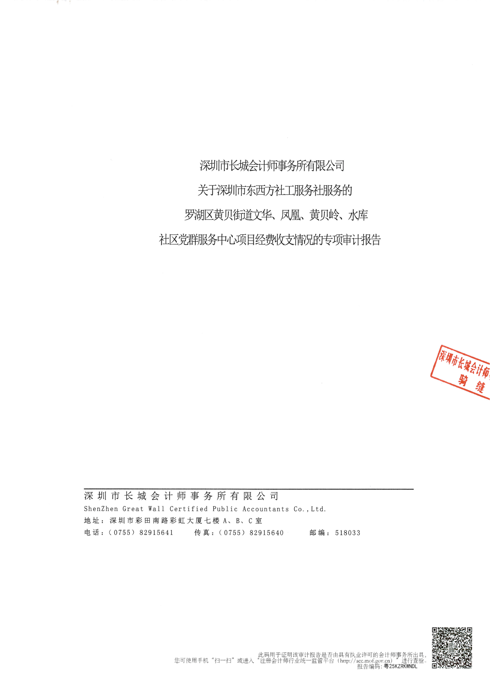 罗湖区黄贝街道文华社区党群服务中心项目经费收支情况的专项审计报告。