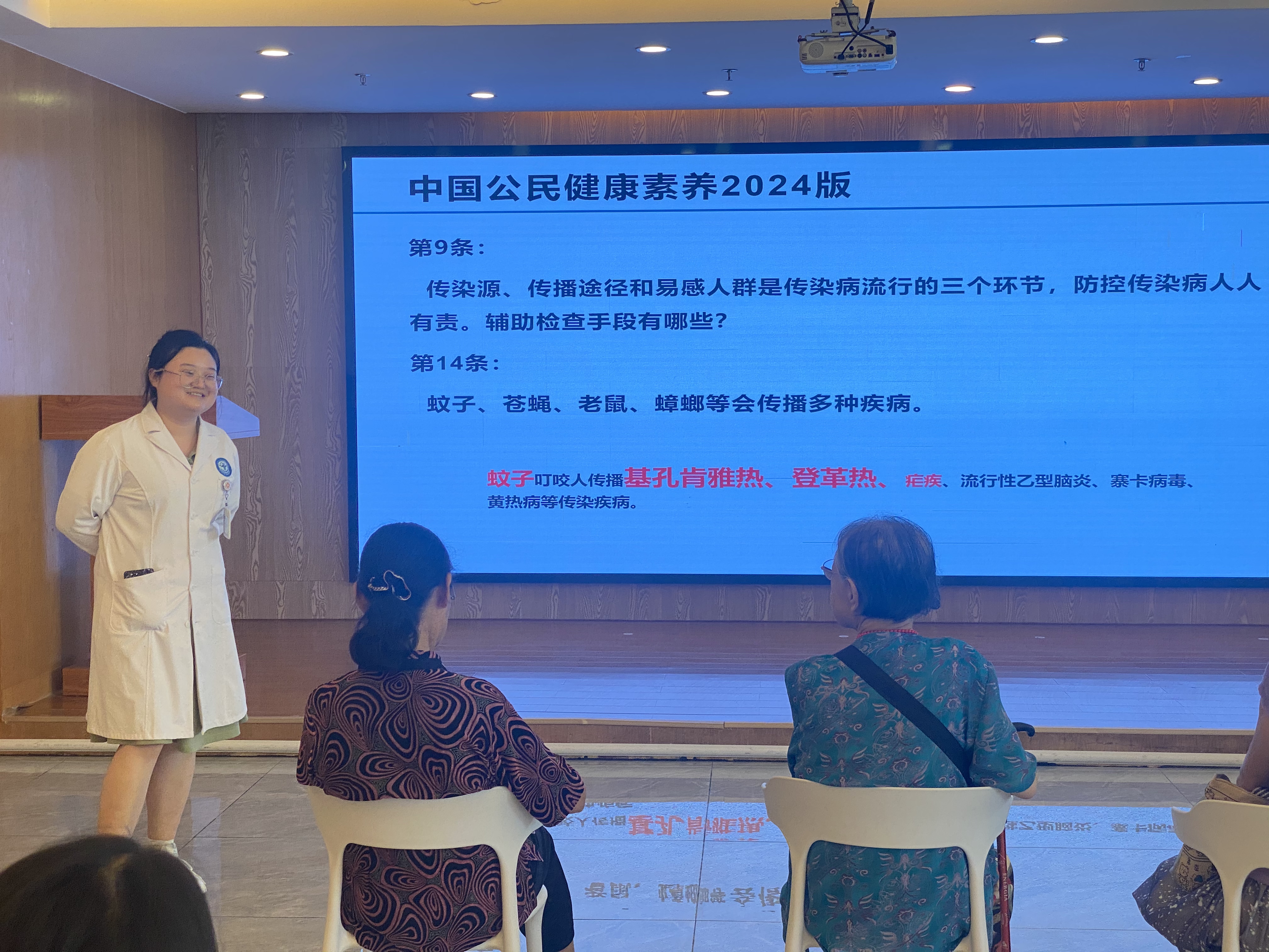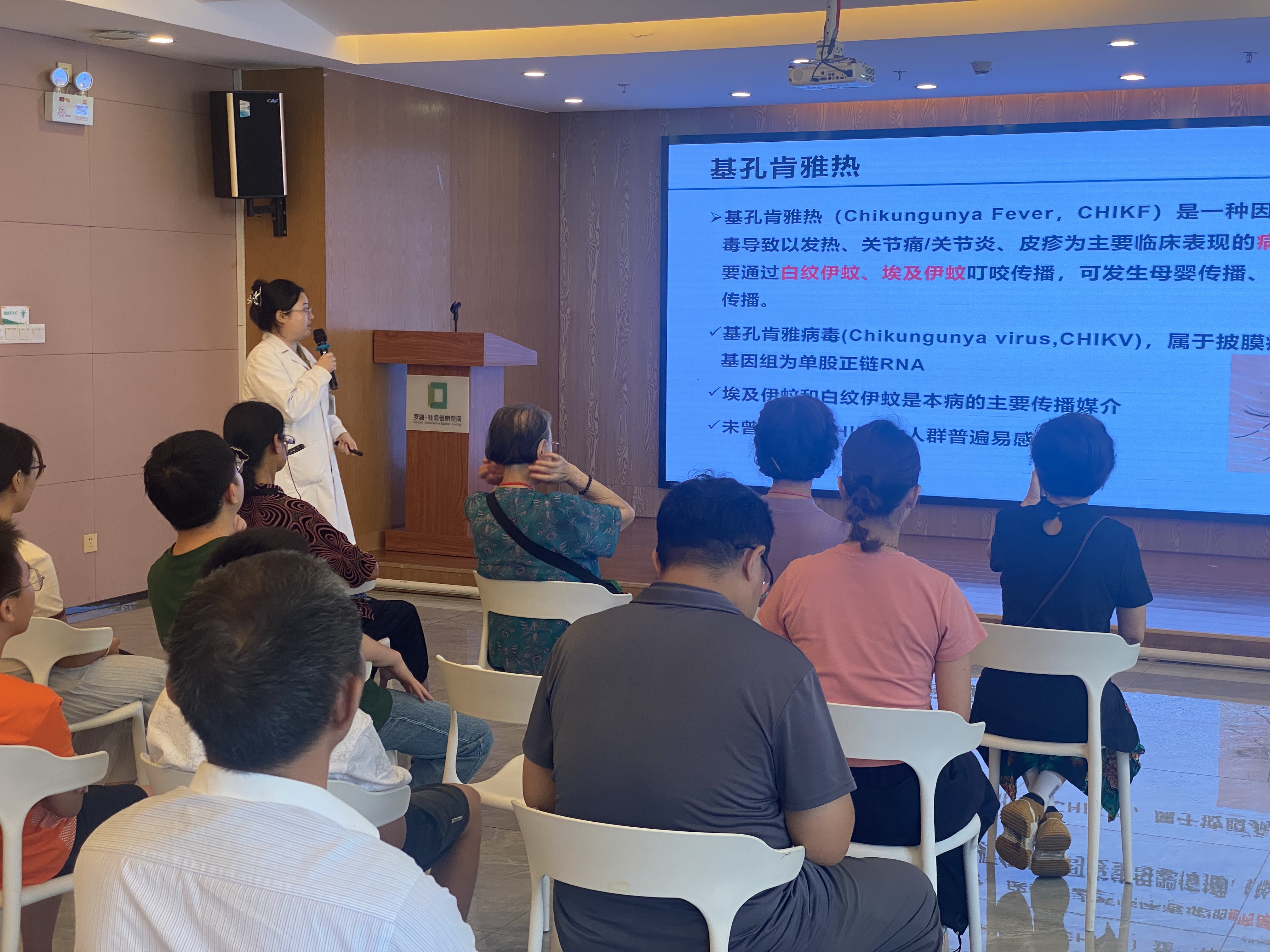讲座上,冷医生介绍了基孔肯雅热的传播途径,指出伊蚊是主要传播媒介,还深入讲解了基孔肯雅热的典型症状,如突发高热、剧烈头痛、关节疼痛等,强调早期识别症状对于及时就医和防止病情恶化至关重要。