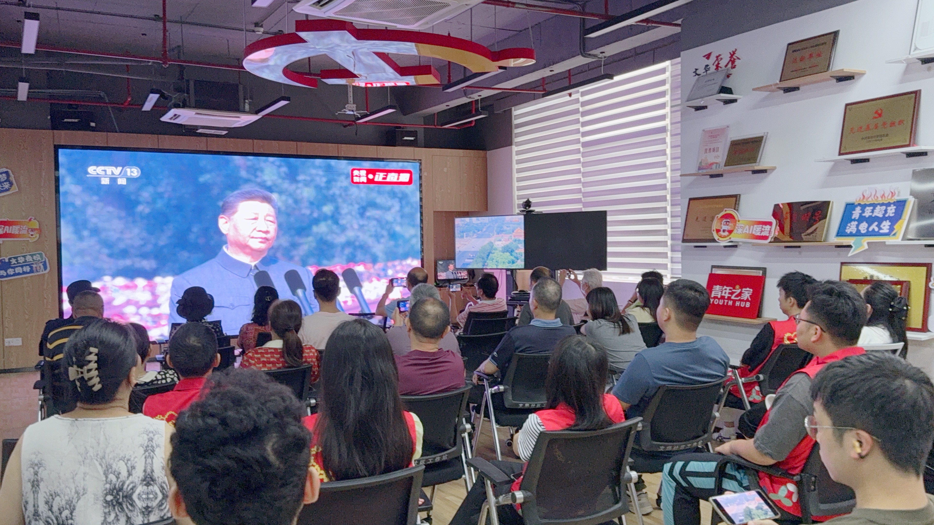“铭记历史·共筑长城”文华社区集中观看抗战胜利80周年阅兵直播活动