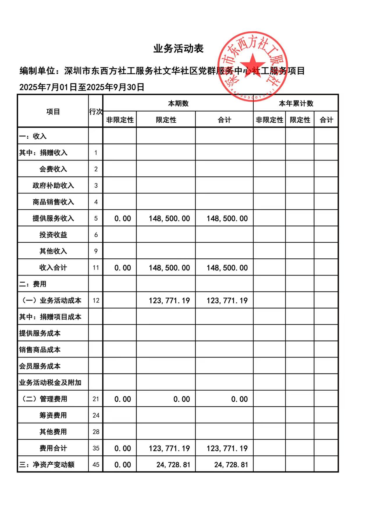文华社区党群服务中心2025年第三季度财务公示