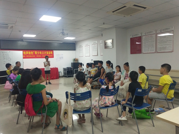 2019年8月15日上午,新兴社区党委、新兴社区居委会、新兴社区工作站主办,深圳市优邦社区文化促进中心协办的民生微实事项目——新兴社区“绘声绘色”青少年口才演讲班进入第四节课了。