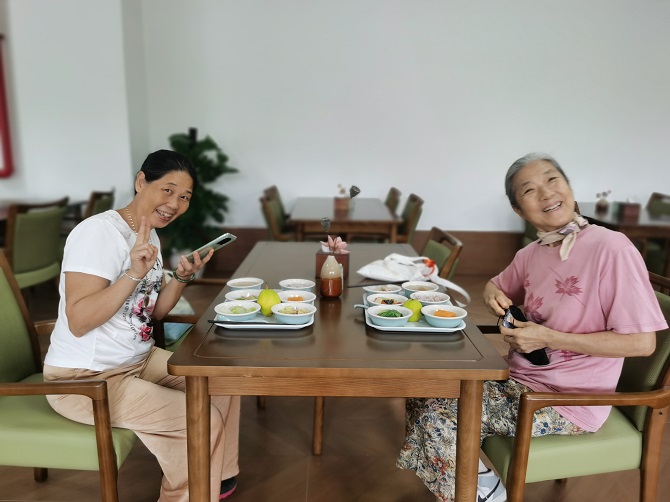 参观团随后体验了颐养院的精致营养膳食。餐厅明亮整洁,菜品色香味俱全,且根据老年人特点进行了科学搭配。"这里的饭菜不仅好吃,还注重营养平衡,比我自己在家随便应付强多了。"70岁的王奶奶开心地说。